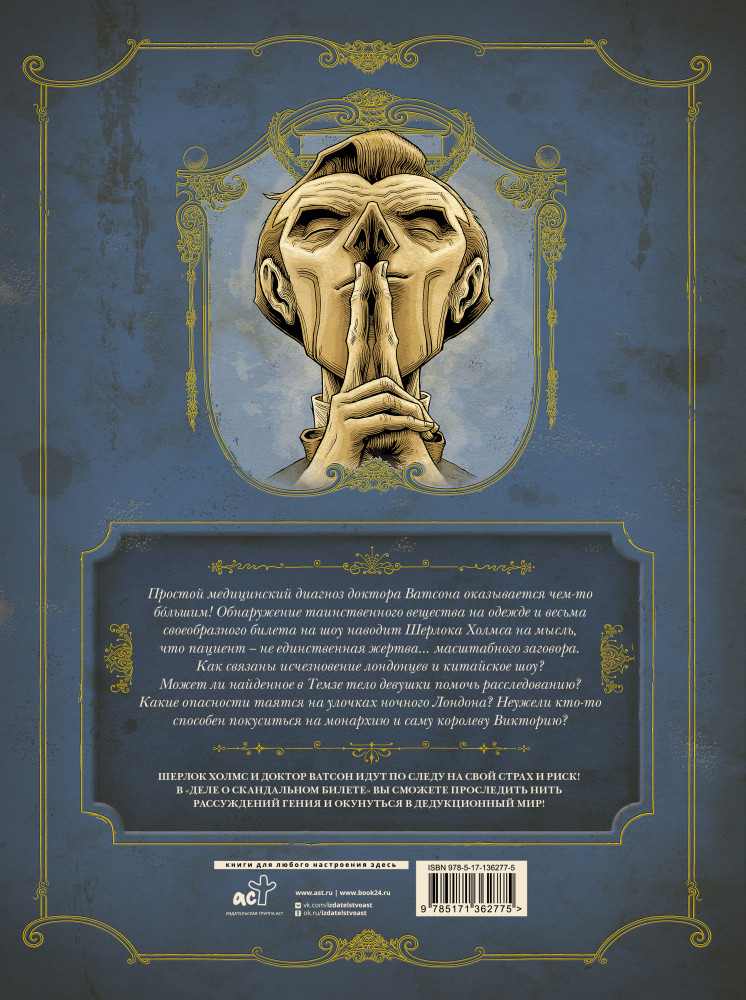 💳 Оплатить за товар можно при получении 🇰🇿 Есть бесплатная доставка по Казахстану от 1 дня 🎁 Копите бонусы с каждой покупки Серия: Шерлок. Графический роман Простой медицинский диагноз от доктора Ватсона оказывается чем-то бóльшим! Обнаружение таинственного порошка на одежде и весьма своеобразного билета на шоу наводит Шерлока Холмса на мысль, что пациент — не единственная жертва крупного... масштабного заговора. Как связаны исчезновение лондонцев и китайское шоу? Может ли найденное в Темзе тело девушки помочь расследованию? Какие опасности таятся на улочках ночного Лондона? И неужели кто-то способен покуситься на монархию и саму королеву Викторию? |