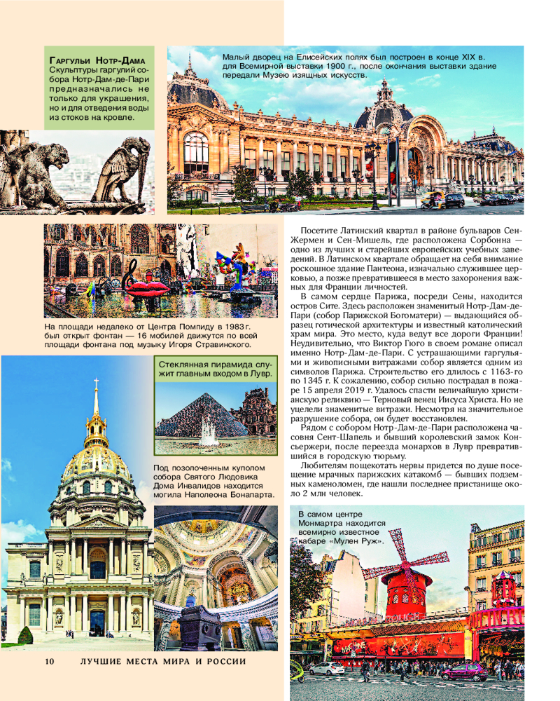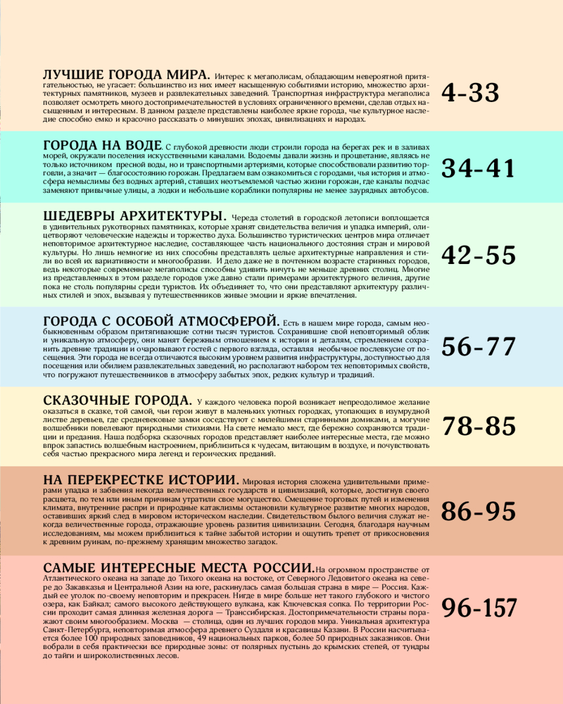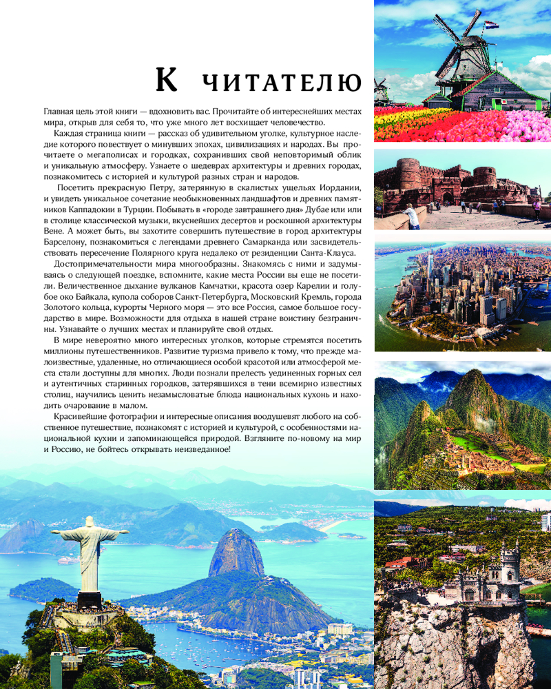 Серия: Лучший иллюстрированный гид Эта книга — своеобразный прекрасно иллюстрированный путеводитель по самым интересным местам мира. У вас есть возможность прочитать о местах, где вы уже побывали, и сравнить со своими впечатлениями, а можно наметить новые маршруты и открыть для себя то, что уже много лет восхищает человечество. Достопримечательности мира многообразны, но вспомните, какие места России вы еще не посетили. Красивейшие фотографии и интересные описания воодушевят любого, познакомят с историей и культурой, с особенностями национальной кухни и запоминающейся природой. Взгляните на мир и Россию, не бойтесь открывать новое! |