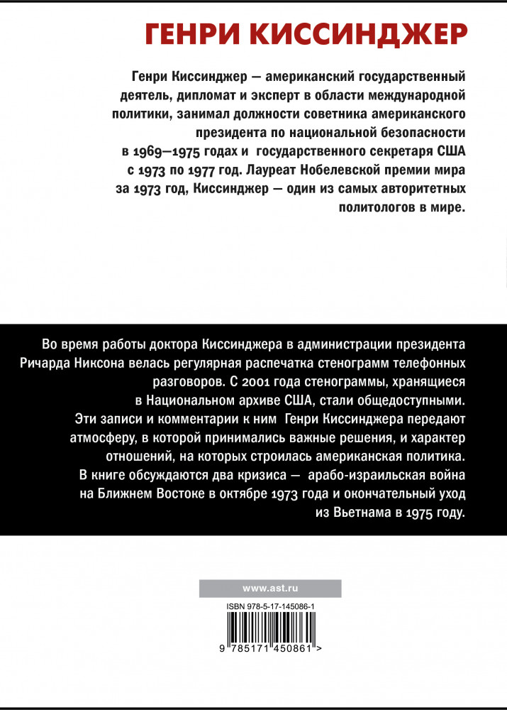 💳 Оплатить за товар можно при получении 🇰🇿 Есть бесплатная доставка по Казахстану от 1 дня 🎁 Копите бонусы с каждой покупки Серия: Мировой порядок Генри Киссинджер — американский государственный деятель, дипломат и эксперт в области международной политики, занимал должности советника американского президента по национальной безопасности в 1969 — 1975 годах и государственного секретаря США с 1973 по 1977 год. Лауреат Нобелевской премии мира за 1973 год, Киссинджер — один из самых авторитетных политологов в мире. |