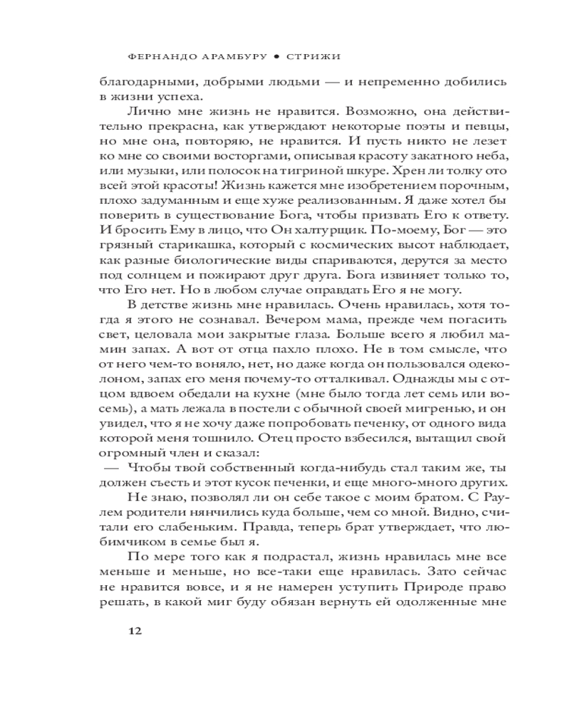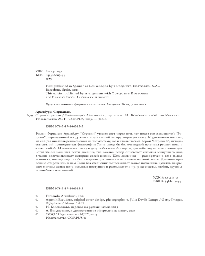 💳 Оплатить за товар можно при получении 🇰🇿 Есть бесплатная доставка по Казахстану от 1 дня 🎁 Копите бонусы с каждой покупки Серия: Corpus Роман Фернандо Арамбуру «Стрижи» увидел свет через пять лет после его знаменитой «Родины», переведенной на 34 языка и принесшей автору мировую славу. К удивлению многих, на сей раз писатель резко сменил не только тему, но и стиль письма. Герой «Стрижей», пятидесятилетний преподаватель философии Тони, вроде бы без очевидной причины решает покончить с собой. И назначает точную дату собственной смерти, дав себе год на завершение дел. Тогда же он начинает вести дневник, где каждый вечер описывает события минувшего дня, а также восстанавливает историю своей жизни. Цель дневника — разобраться в себе самом и понять, почему ему так бесповоротно расхотелось оставаться на этой земле. Дневник предельно откровенен, в нем Тони без стеснения выплескивает самые потаенные чувства, вскрывает мотивы самых неприглядных поступков и размышляет о природе счастья, любви, дружбы и семейных отношений. |