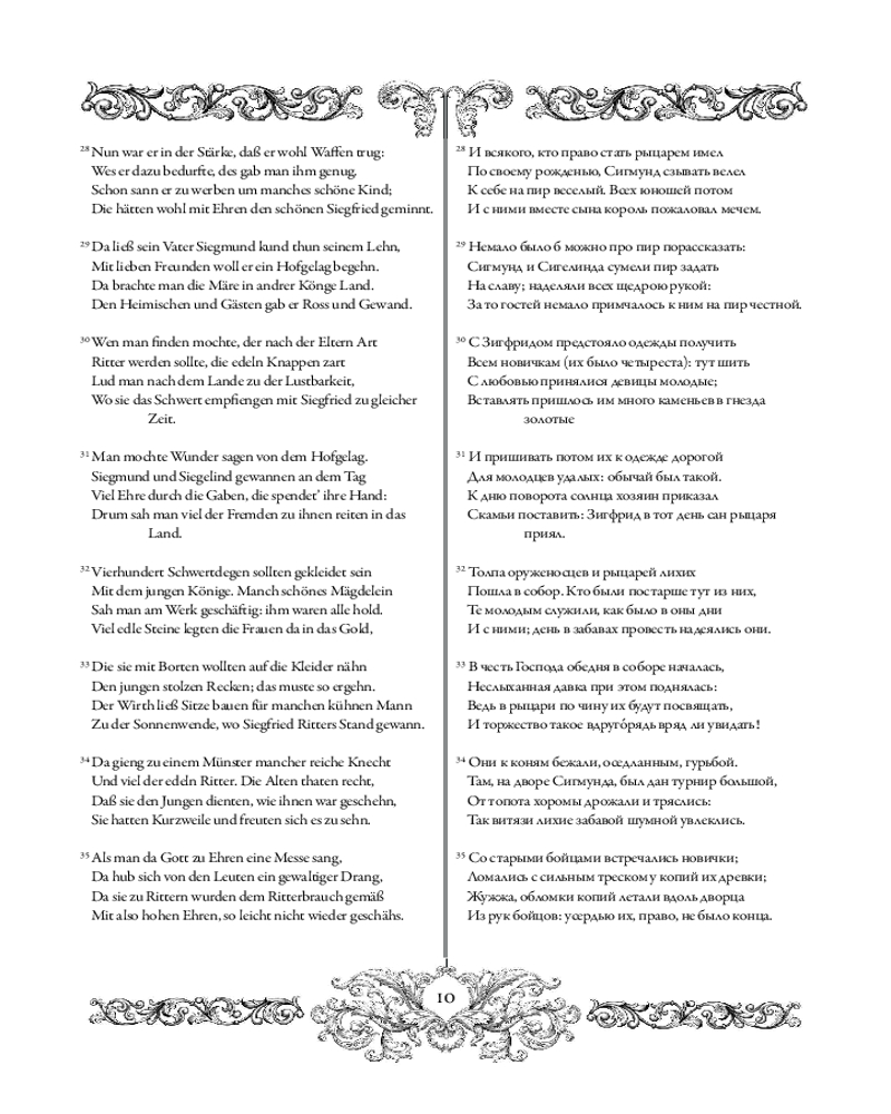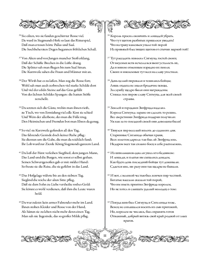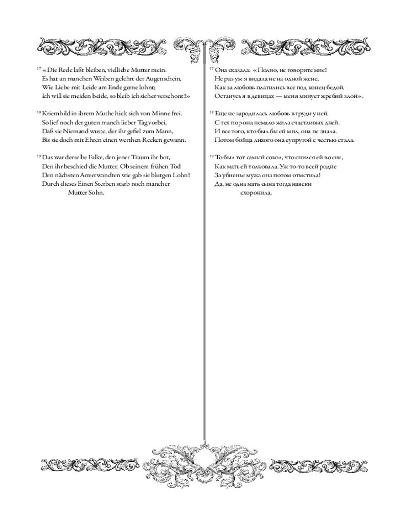Параллельный текст, приведенный в книге, делает ее особенно познавательной и полезной для изучения немецкого языка. Поэтический перевод на русский язык, отмеченный Пушкинской премией, принадлежит перу М. И. Кудряшева.