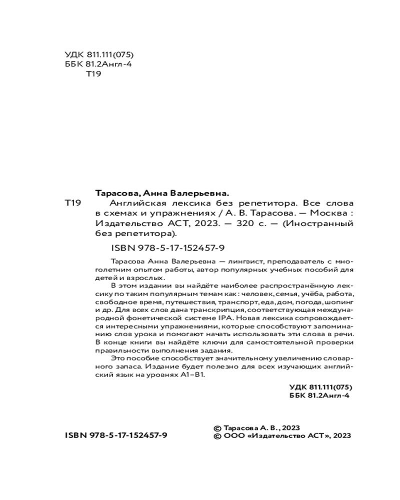 💳 Оплатить за товар можно при получении 🇰🇿 Есть бесплатная доставка по Казахстану от 1 дня 🎁 Копите бонусы с каждой покупки Тарасова Анна Валерьевна — лингвист, преподаватель с многолетним опытом работы, автор популярных учебных пособий для детей и взрослых. |