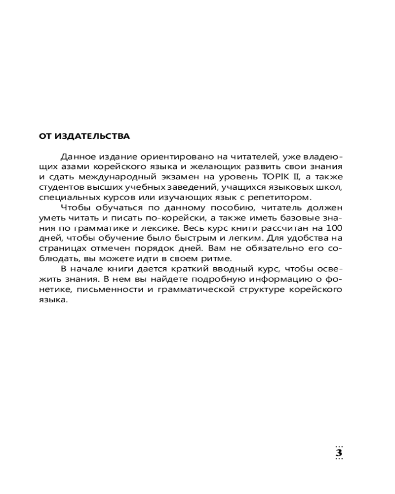 Это пособие ориентировано на тех, кто уже владеет начальными знаниями корейского языка и хочет повысить свой уровень до TOPIK II. |