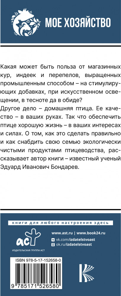 💳 Оплатить за товар можно при получении 🇰🇿 Есть бесплатная доставка по Казахстану от 1 дня 🎁 Копите бонусы с каждой покупки Серия: Мое хозяйство Какая может быть польза от магазинных кур, индеек и перепелов, выращенных промышленным способом — на стимулирующих добавках, при искусственном освещении, в тесноте да в обиде? |