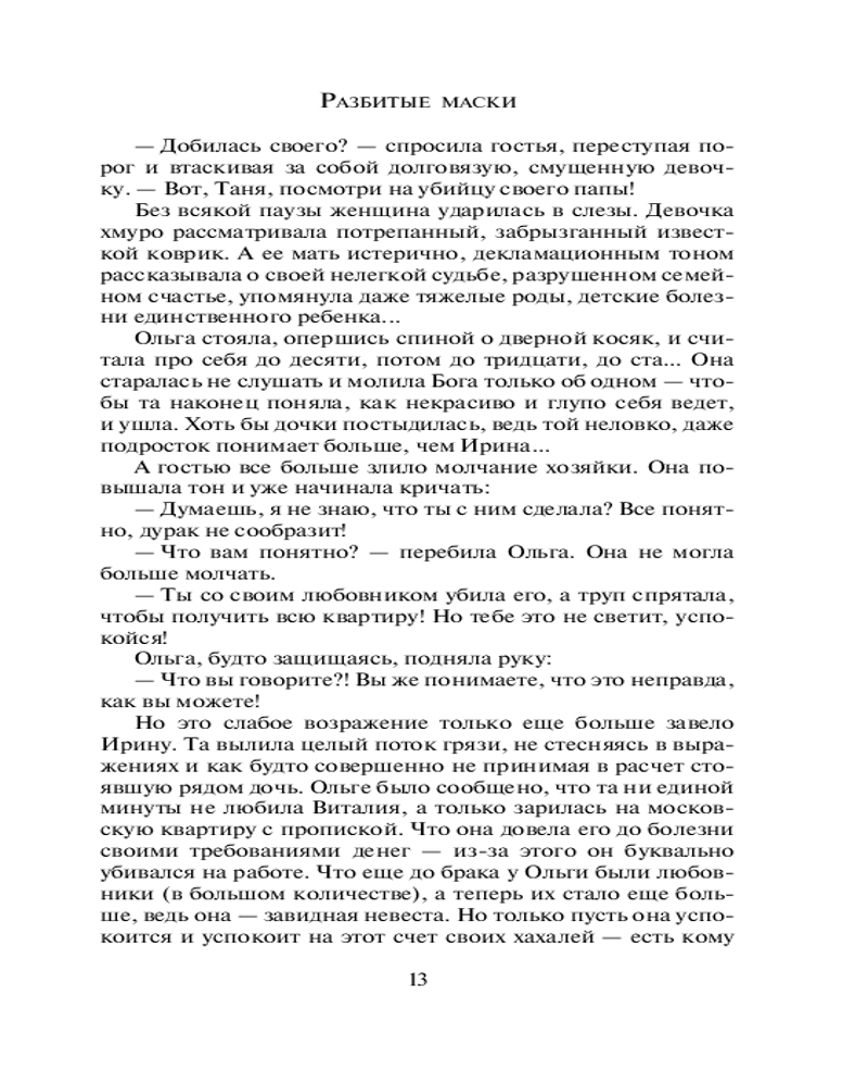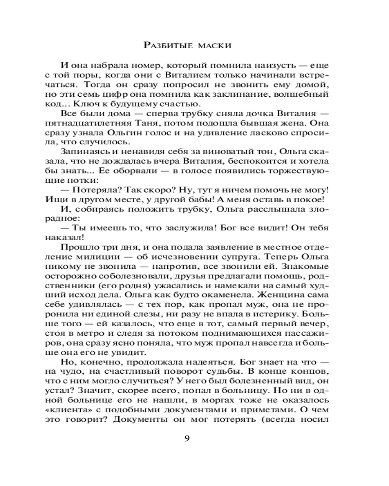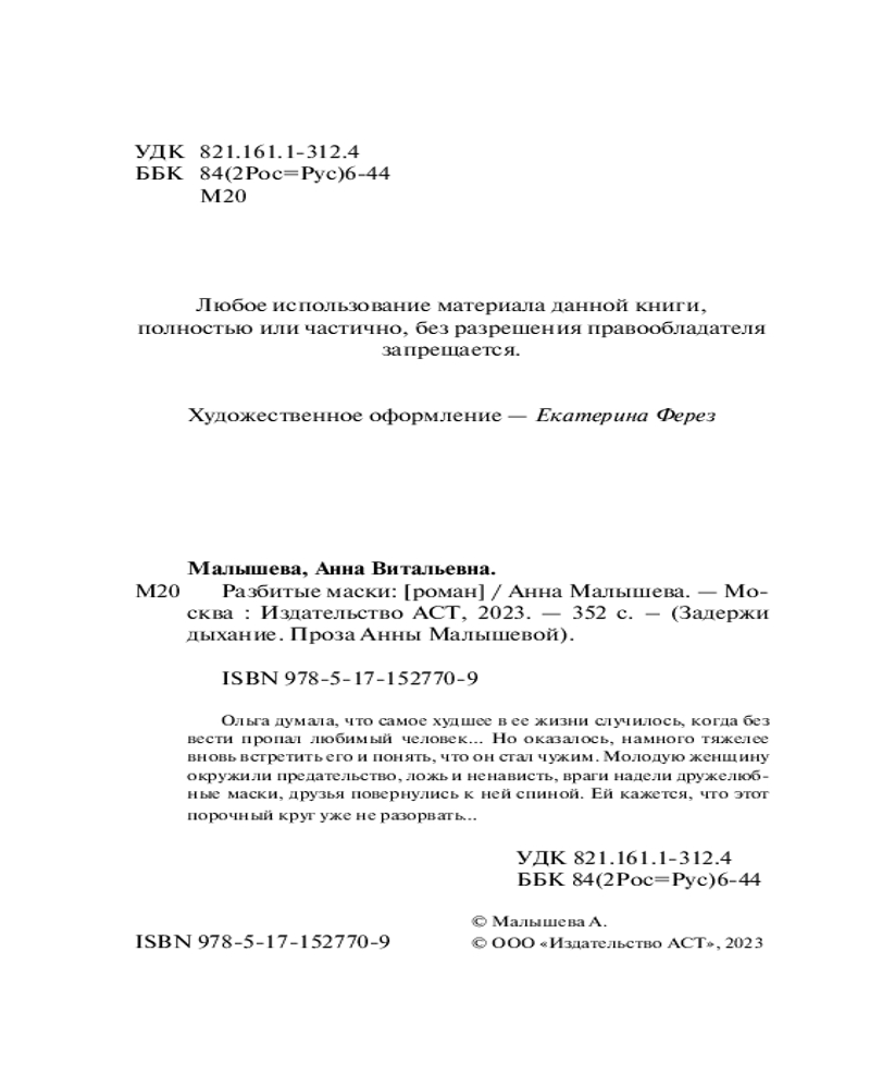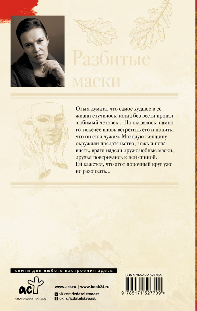 Разбитые маскиВ данный момент этот товар отсутствует в продаже. Возможно, у нас найдется аналогичный или похожий товар здесь. Серия: Задержи дыхание. Проза Анны Малышевой Ольга думала, что самое худшее в ее жизни случилось, когда без вести пропал любимый человек... Но оказалось, намного тяжелее вновь встретить его и понять, что он стал чужим. Молодую женщину окружили предательство, ложь и ненависть, враги надели дружелюбные маски, друзья повернулись к ней спиной. Ей кажется, что этот порочный круг уже не разорвать... |