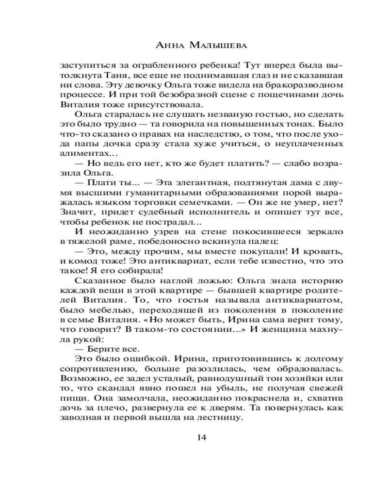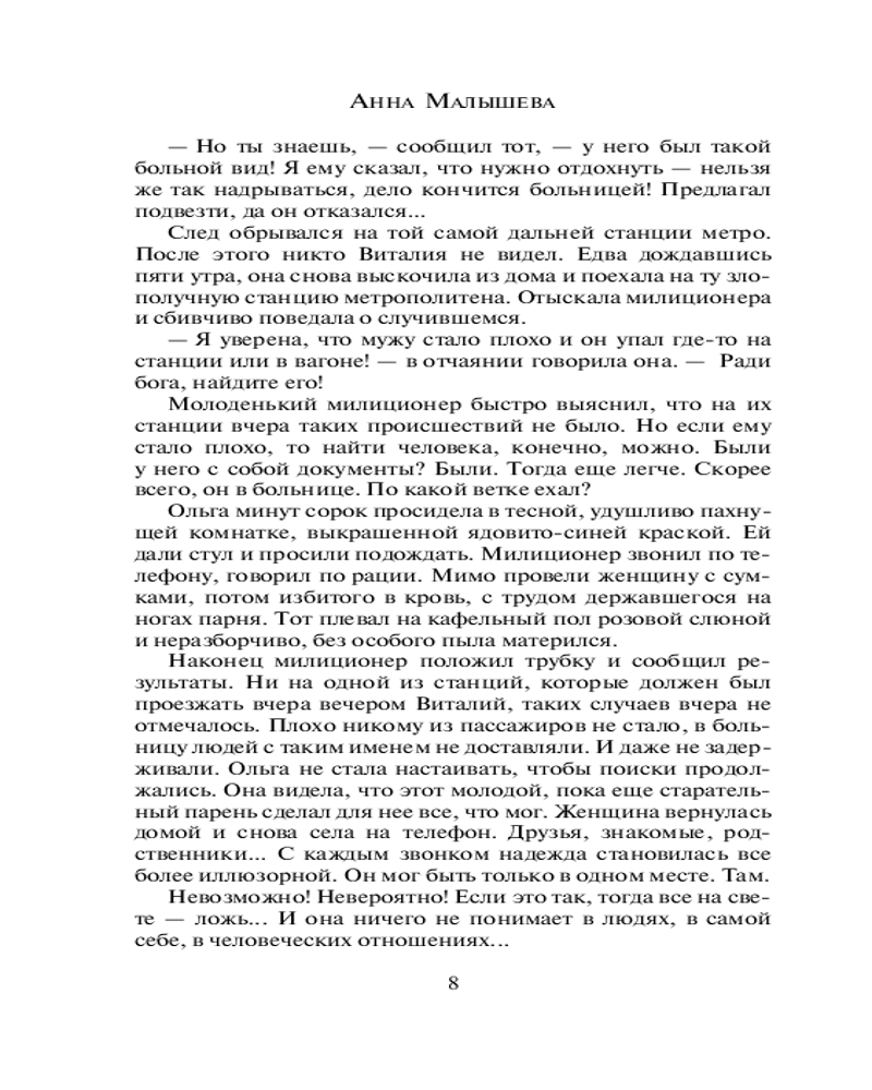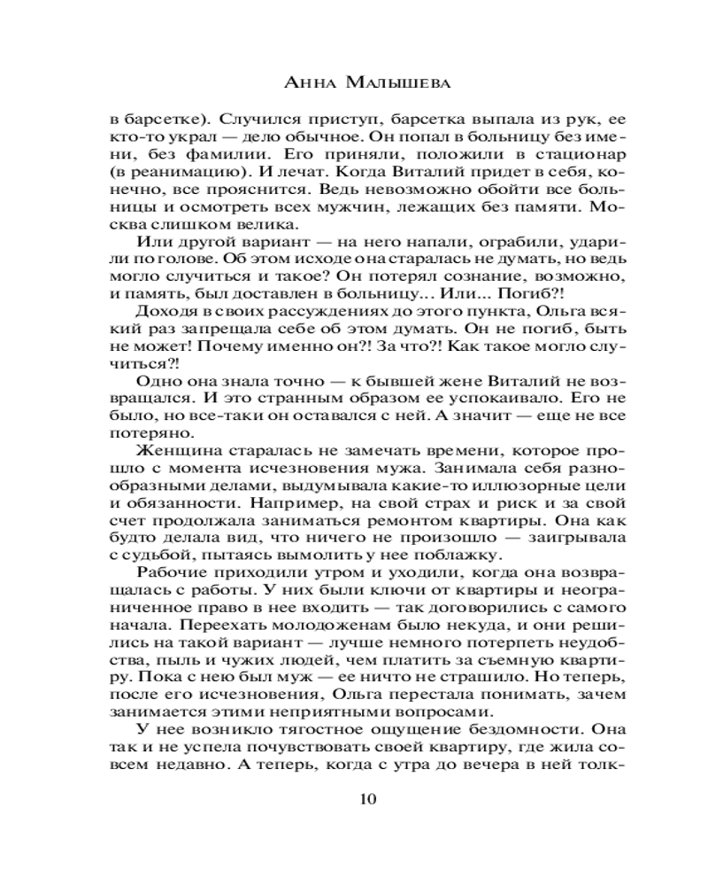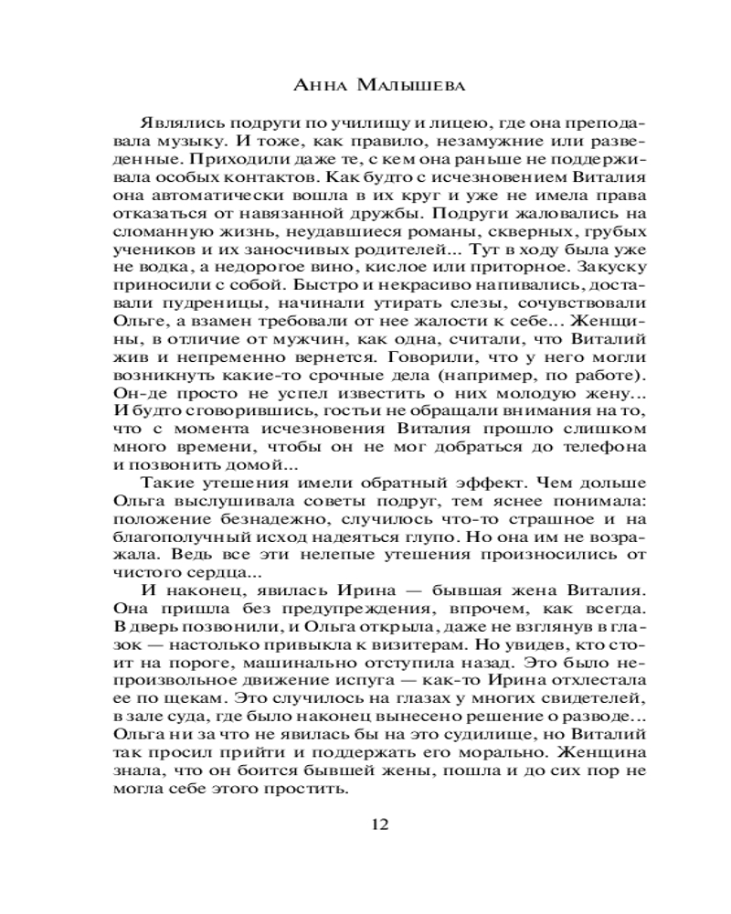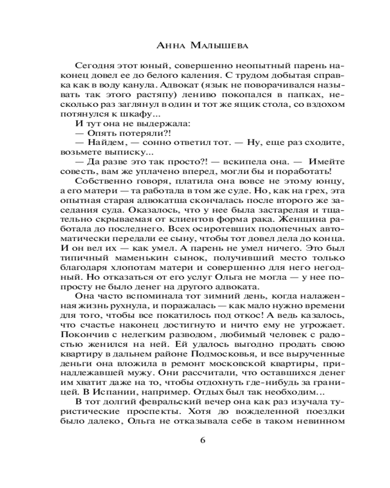 | Анна Малышева окончила Литературный институт имени А.М. Горького. С 1996 года издает любовно-детективные романы, которые сразу получили горячее признание широкой читательской аудитории. Определить жанр ее произведений. Это и психологический детектив, и драма, и социальный роман... В ее книгах отражена вся действительность в самых разных ее проявлениях, одним словом - проза жизни. Мастерское перо великолепной Анны Малышевой заставит переживать вместе с ее героями с первой минуты и до... |