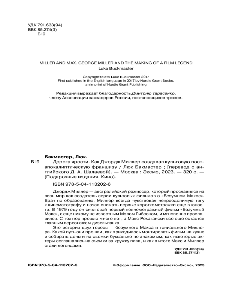 Дорога ярости. Как Джордж Миллер создавал культовую постапокалиптическую франшизуВ данный момент этот товар отсутствует в продаже. Возможно, у нас найдется аналогичный или похожий товар здесь. Серия: Подарочные издания. Кино Когда в 1979 году неизвестный австралийский режиссер снял свой первый полнометражный фильм «Безумный Макс», никто не подозревал, что это начало величайшей франшизы в стиле дизельпанк. Джордж Миллер, выходец из семьи эмигрантов, врач по образованию, в одночасье стал знаменитым. Его первый «Безумный Макс» с бюджетом в 300 тысяч долларов попал в Книгу рекордов Гиннесса как фильм с наивысшим соотношением между затратами на производство и прибылью (более 100 миллионов долларов). Этот головокружительный рекорд не могли побить почти 20 лет!   |