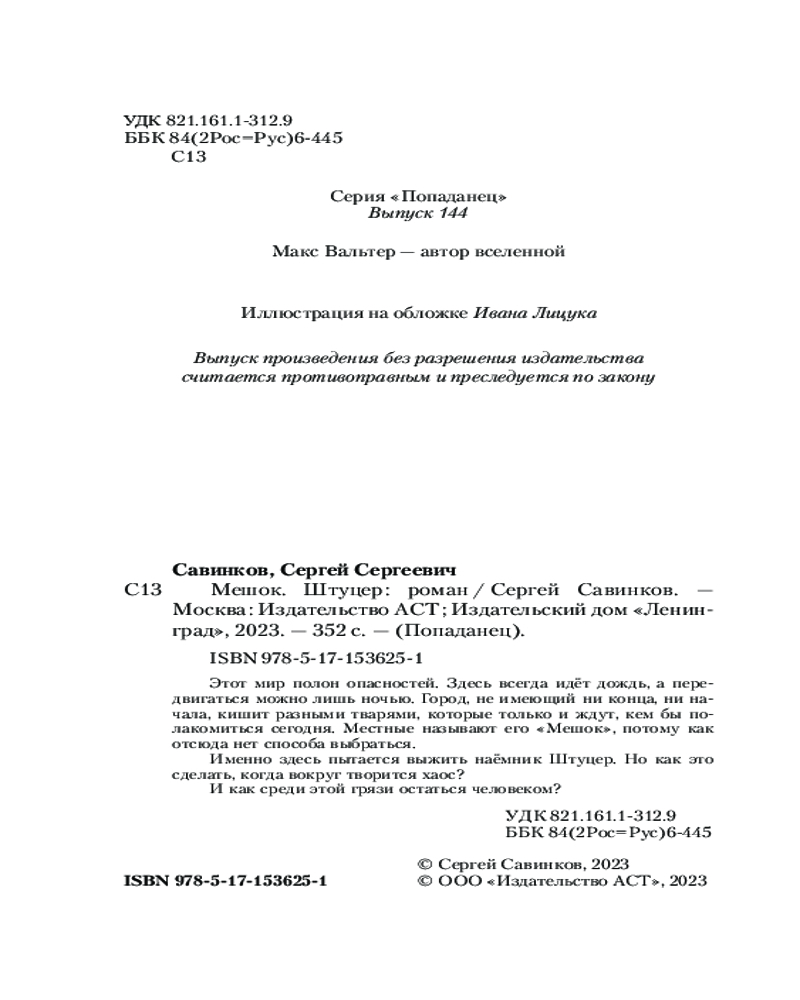 💳 Оплатить за товар можно при получении 🇰🇿 Есть бесплатная доставка по Казахстану от 1 дня 🎁 Копите бонусы с каждой покупки Серия: Попаданец Этот мир полон опасностей. Здесь всегда идёт дождь, а передвигаться можно лишь ночью. Город, не имеющий ни конца, ни начала, кишит разными тварями, которые только и ждут, кем бы полакомиться сегодня. Местные называют его «Мешок», потому как отсюда нет способа выбраться. Именно здесь пытается выжить наёмник Штуцер. Но как это сделать, когда вокруг творится хаос? И как среди этой грязи остаться человеком? |