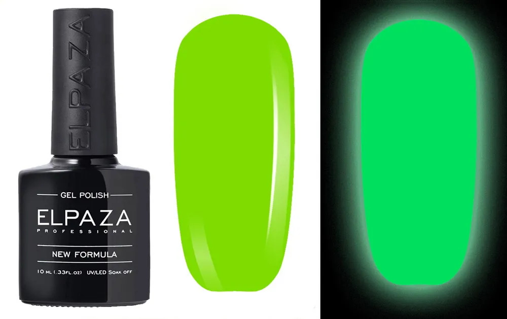 Elpaza Glow — это флуоресцентные гель-лаки, которые светятся в темноте. Требуется предварительно напитать покрытие дневным светом, тогда при отсутствии освещения, гель-лак какое-то время будет этот свет отдавать. Консистенция в меру густая, гель-лаки легко ложатся, хорошо распределяются, плотно пигментированы. Наносятся двумя слоями, техникой в три мазка, полимеризуются в LED/UV лампе. Продукция сертифицирована, соответствует всем требованиям современной ногтевой индустрии, подходит для профессиональной деятельности мастера маникюра.