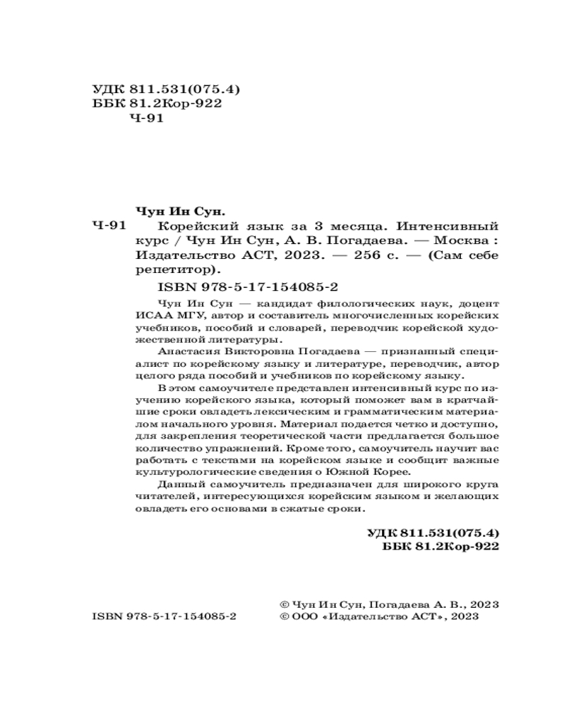 💳 Оплатить за товар можно при получении 🇰🇿 Есть бесплатная доставка по Казахстану от 1 дня 🎁 Копите бонусы с каждой покупки Серия: Сам себе репетитор Чун Ин Сун — кандидат филологических наук, доцент ИСАА МГУ, автор и составитель многочисленных корейских учебников, пособий и словарей, переводчик корейской художественной литературы. |