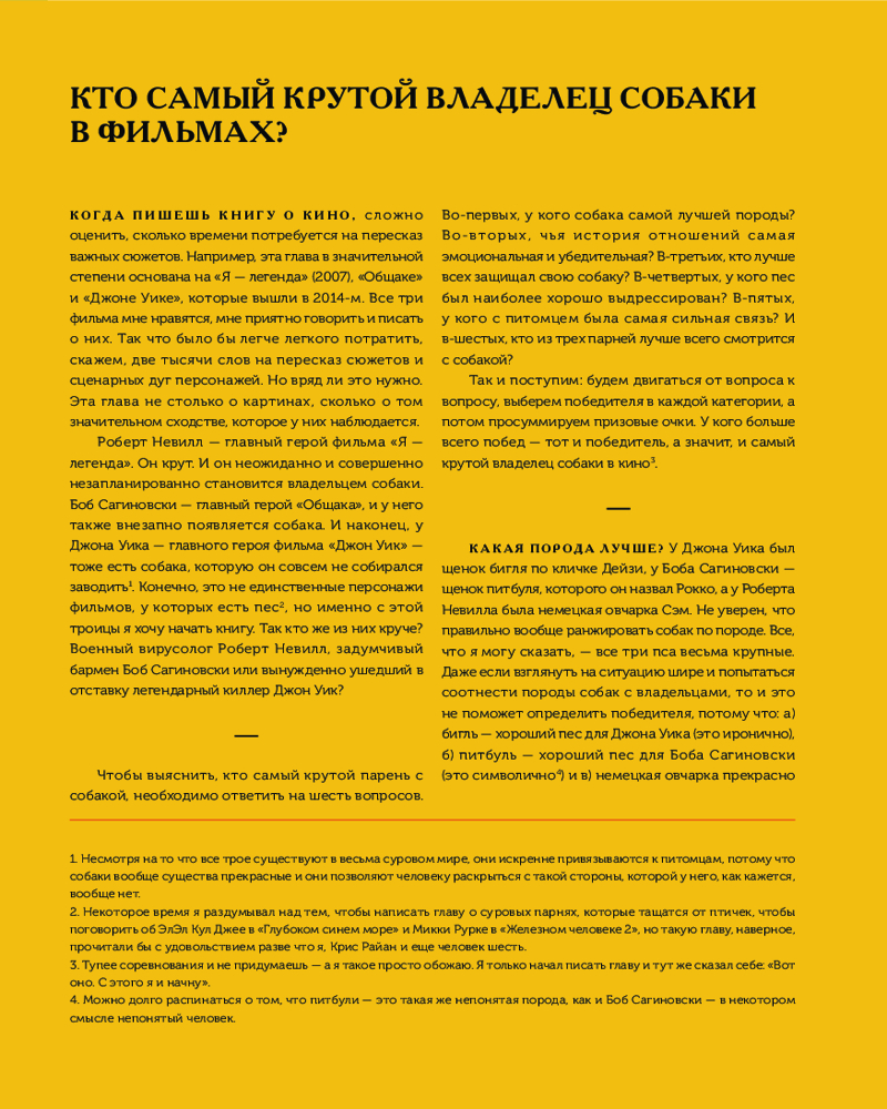 Это книга о кино, вот что это. Я написал ее, потому что обожаю кино, потому что оно имело для меня огромное значение с самого детства. И, вероятно, будет важной частью моей жизни вплоть до самой смерти. Или пока не перестанут снимать новые части «Форсажа». Любопытно, что случится раньше?
