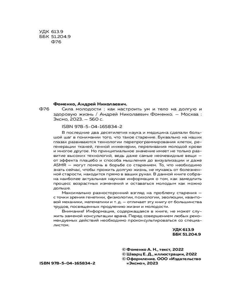 Сила молодости. Как настроить ум и тело на долгую и здоровую жизньВ данный момент этот товар отсутствует в продаже. Возможно, у нас найдется аналогичный или похожий товар здесь. Серия: Тело, ум, здоровье. Книги о простых способах улучшить самочувствие Развитие заболеваний лишь на 5–10% зависит от генетики, и привычки гораздо больше предопределяют здоровье. |