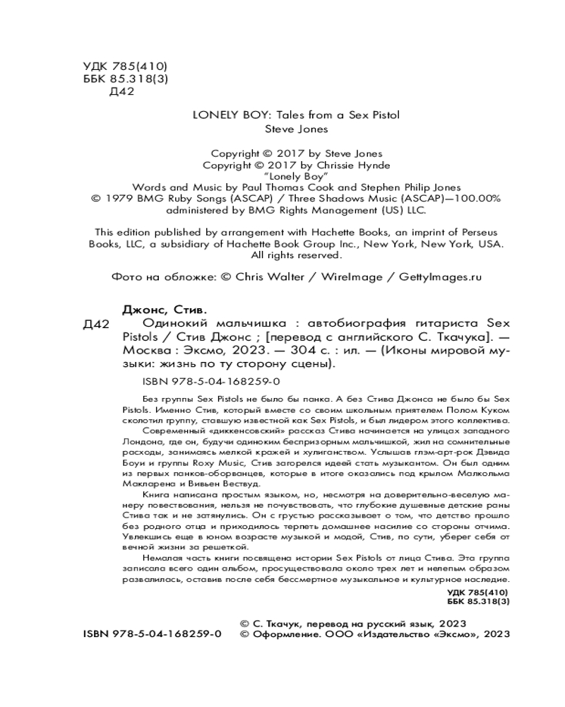 | Одинокий мальчишка: автобиография гитариста Sex Pistols Стив Джонс +175 (бонусов)