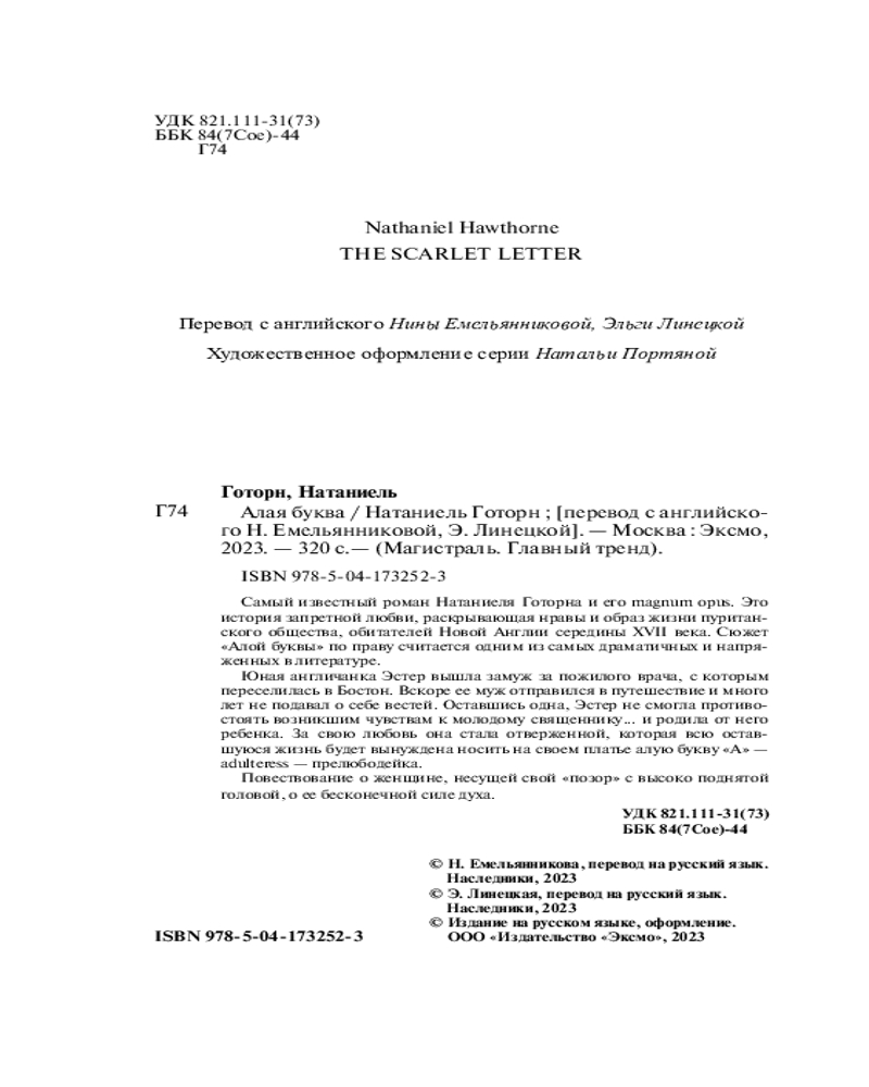 💳 Оплатить за товар можно при получении 🇰🇿 Есть бесплатная доставка по Казахстану от 1 дня 🎁 Копите бонусы с каждой покупки Серия: Магистраль. Главный тренд Самый известный роман Натаниеля Готорна и его magnum opus. Это история запретной любви, раскрывающая нравы и образ жизни пуританского общества, обитателей Новой Англии середины XVII века. Сюжет «Алой буквы» по праву считается одним из самых драматичных и напряженных в литературе. |