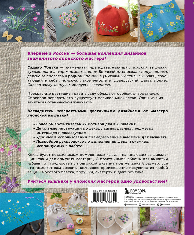 Дивный сад Садако Тоцуки. Свежие цветочные мотивы для вышивкиВ данный момент этот товар отсутствует в продаже. Возможно, у нас найдется аналогичный или похожий товар здесь. Серия: Звезды рукоделия. Бестселлер из Японии Впервые в России — уникальная коллекция мотивов для вышивки от знаменитой Садако Тоцуки! Ее дизайны снискали популярность далеко за пределами родной Японии, а уникальный стиль вышивки, сочетающий в себе японскую лаконичность и французский шарм, принес Садако заслуженную мировую известность. И наконец-то книга маэстро ботанической вышивки добралась до России! |