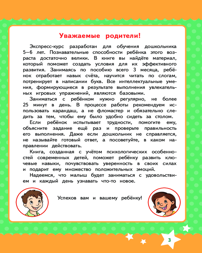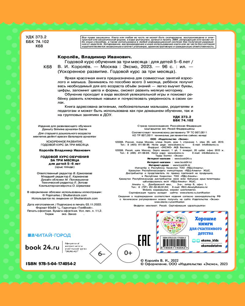 💳 Оплатить за товар можно при получении 🇰🇿 Есть бесплатная доставка по Казахстану от 1 дня 🎁 Копите бонусы с каждой покупки Серия: Ускоренное развитие. Годовой курс за три месяца Экспресс-курс разработан для развития и обучения дошкольника. Занимаясь, ребенок отработает навык счета, научится читать по слогам, потренирует в написании букв. |