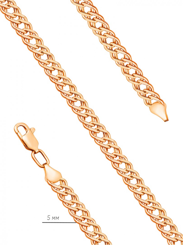 Изящное изделие выполнено из красного золота 585 пробы. Изделие дополнит повседневный образ и впишется в торжественный. Такая цепочка подойдет и мужчинам, и женщинам. Можно дополнить подвеской.