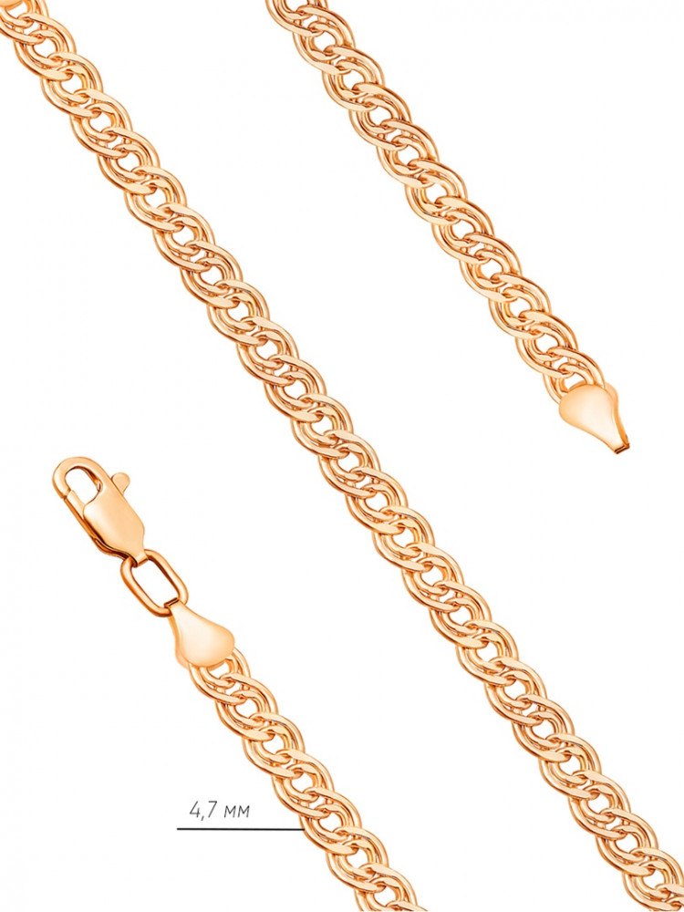 Изящное изделие выполнено из красного золота 585 пробы. Изделие дополнит повседневный образ и впишется в торжественный. Такая цепочка подойдет и мужчинам, и женщинам. Можно дополнить подвеской.