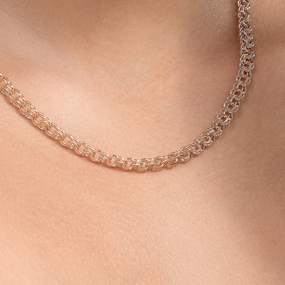 Изящное изделие выполнено из красного золота 585 пробы. Изделие дополнит повседневный образ и впишется в торжественный. Такая цепочка подойдет и мужчинам, и женщинам. Можно дополнить подвеской.