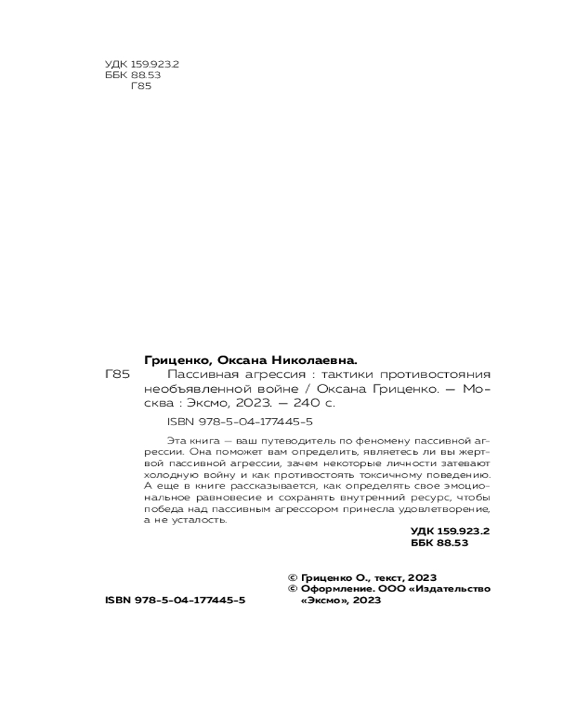Серия: Top expert. Практичные книги для работы над собой «Ты так хорошо получилась на фото, совсем на себя не похожа». «Котлеты очень вкусные, но не как у моей мамы». «Не ожидала, что ты успеешь сделать отчет». Все это до боли знакомые проявления пассивной агрессии — формы токсичного общения, при котором обидные замечания подаются под соусом вежливости и заботы. |