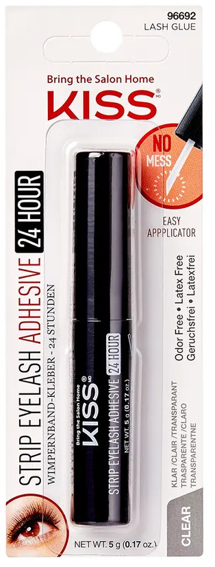 Способ применения: достаньте накладные ресницы из упаковки, подгоните размер, нанесите тонкий слой клея Kiss Eyelash Adhesive на ресницы, подождите 30 сек, после чего зафиксируйте вдоль линии натуральных ресниц, прижимая их к веку.