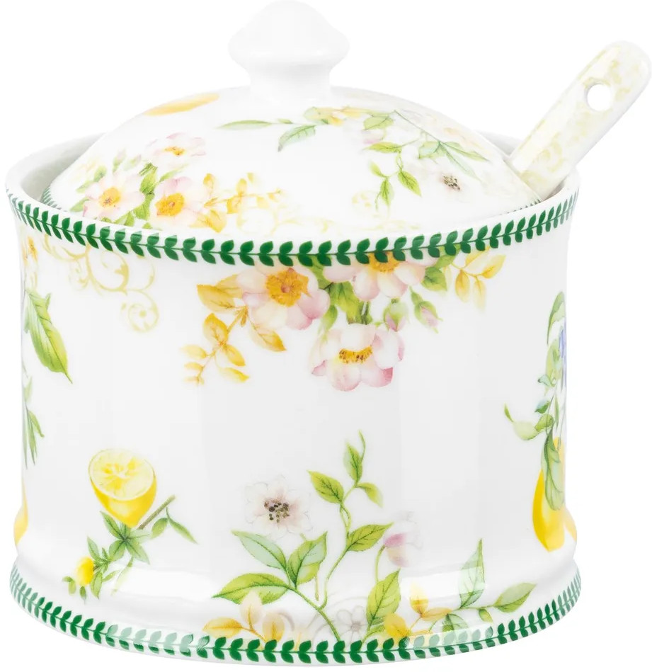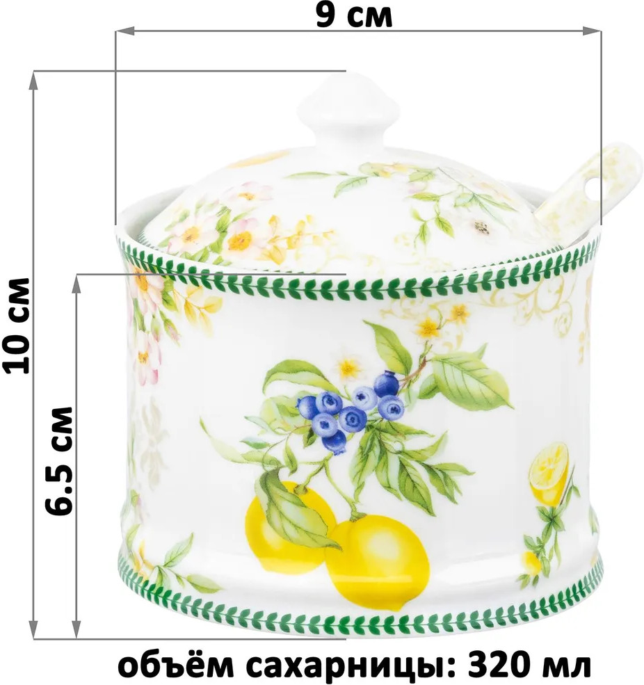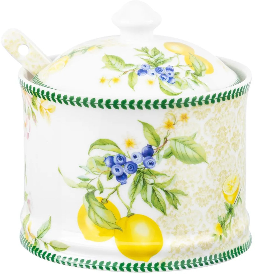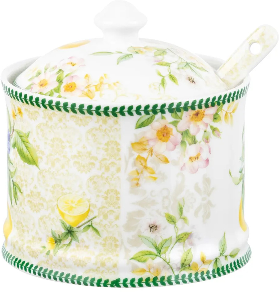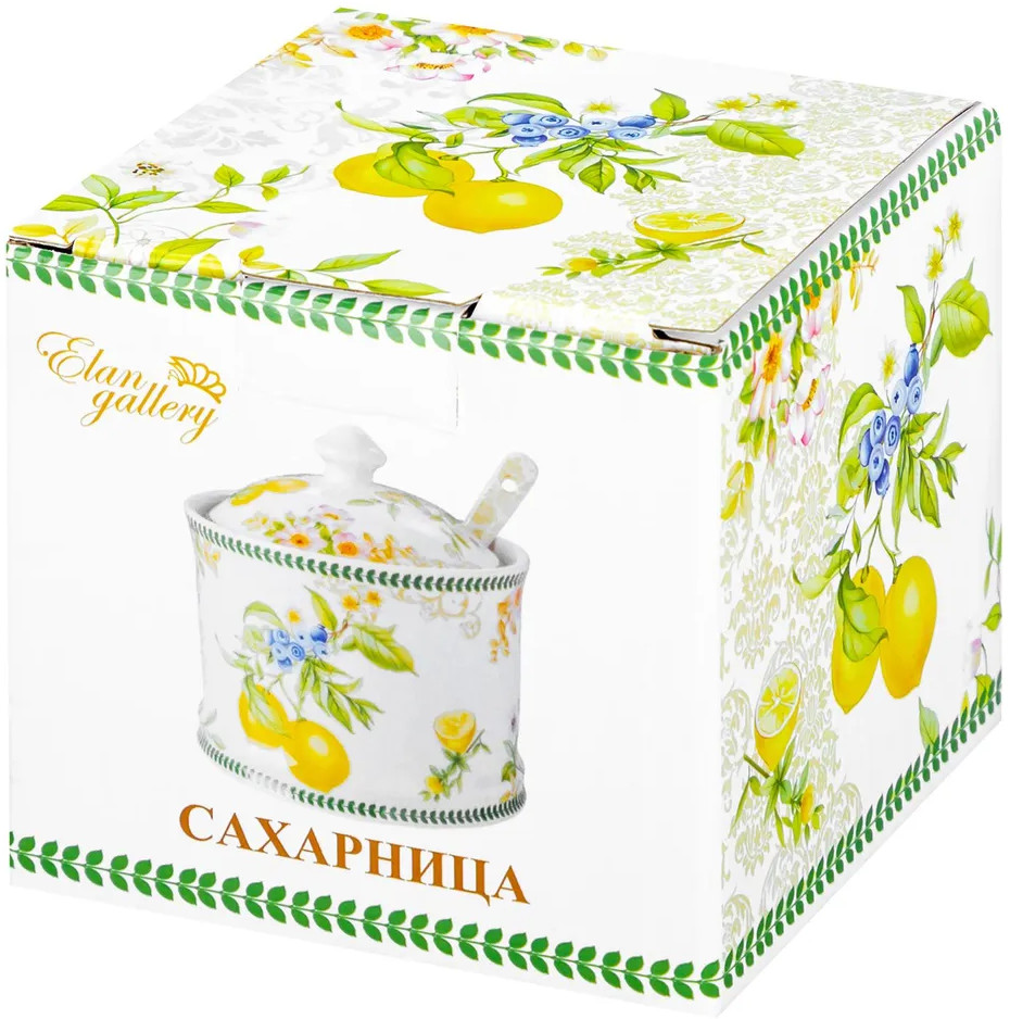 Elan Gallery Сахарница с ложкой «Лимоны»В данный момент этот товар отсутствует в продаже. Возможно, у нас найдется аналогичный или похожий товар здесь. Серия: Лимоны Сахарница серии «Лимоны» с крышкой и ложкой подойдет для хранения и красивой подачи к столу сахара, варенья, меда, соли, специй, кофе и других продуктов. Банка с крышкой выполнена из высококачественного белого фарфора и украшена декоративными изображениями. Фарфоровая посуда отличается от керамики повышенной плотностью. Фарфор не впитывает цвет продуктов и не деформируется от влаги, чему может быть подвержена керамическая посуда. Поставляется в стильной картонной упаковке. Сахарница из серии посуды «Лимоны» сможет стать настоящим украшением вашей кухни и сервировки или приятным подарком для родных и близких! |