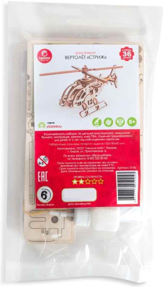 Lemmo Конструктор «Вертолёт Стриж»В данный момент этот товар отсутствует в продаже. Возможно, у нас найдется аналогичный или похожий товар здесь. Серия: Военная техника Деревянный конструктор с лопастями, которые крутятся. Классный набор для сборки от компании «Lemmo». Здорово собирать детям вместе с родителями, а потом раскрасить модельку. У собранной модели вращается несущий винт на резиномоторе. Открывается кабина вертолёта. При желании игрушку можно раскрасить акриловыми или гуашевыми красками. |