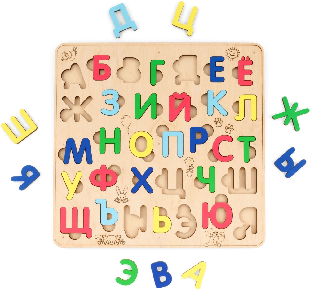 EWA Eco-Wood-Аrt Сортер «Русский алфавит»В данный момент этот товар отсутствует в продаже. Возможно, у нас найдется аналогичный или похожий товар здесь. Серия: Пазлы и головоломки Развивающая игра в виде сортера для малышей по системе Монтессори, которая помогает изучить русский алфавит от А до Я в игровой форме. Сортер для детей от компании Eco Wood Art. Сортер деревянный выполнен из березовой фанеры и отшлифован. |