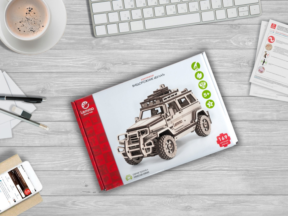 Новая серия внедорожников из дерева от компании «Lemmo». Конструктор «Внедорожник Булат» — это милитари джип для выполнения важных задач, который максимально функционален для игры. Открываются двери, куда вы можете посадить ваших солдатиков, даже поставить пулеметчика, где открывается люк.