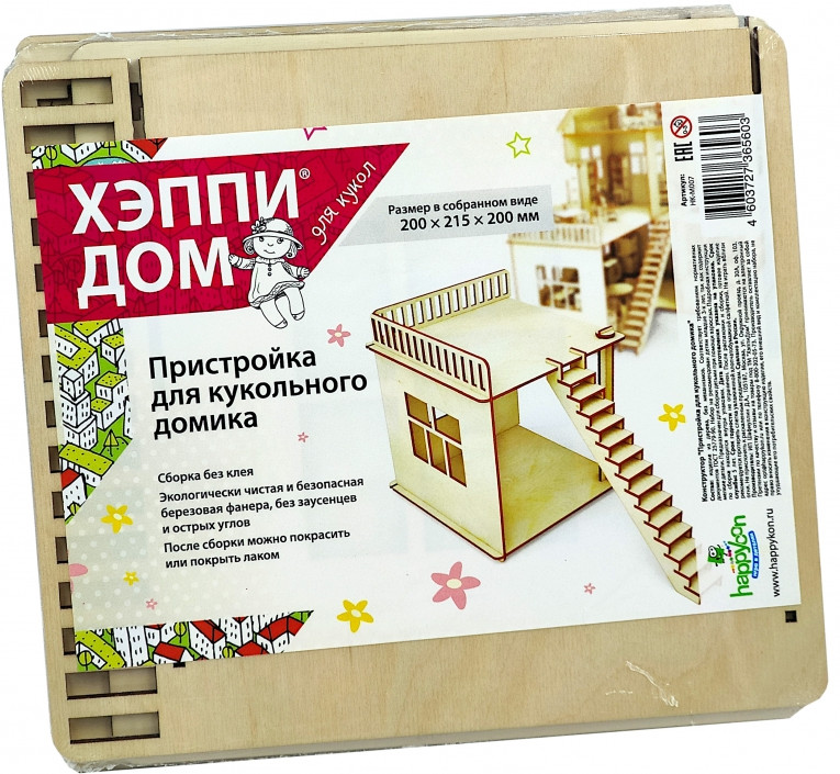 Конструкторы «Happycon» — это занимательные наборы из березовой фанеры для сборки. Кукольные домики, наборы мебели и всевозможные аксессуары к ним. Кукольные домики можно собирать всей семьей, потом разукрашивать, декорировать по вашему вкусу. Модели «Happycon» помогут раскрыть воображение, дизайнерский талант и здорово провести время вместе со своими любимыми героями или куколками. Все наборы экологически чистые, изготовлены из березовой фанеры высшего сорта и тщательно отшлифованы.