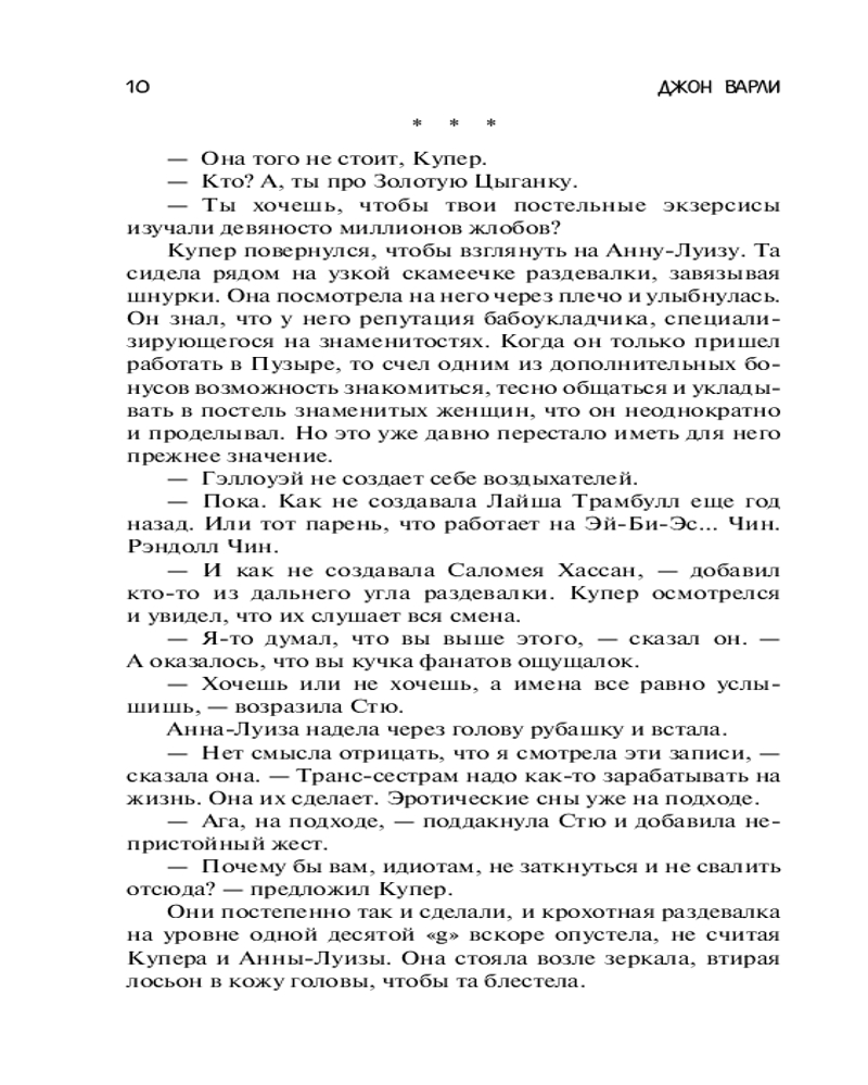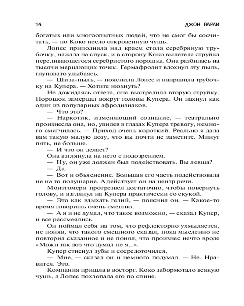 💳 Оплатить за товар можно при получении 🇰🇿 Есть бесплатная доставка по Казахстану от 1 дня 🎁 Копите бонусы с каждой покупки Серия: Фантастика: классика и современность Джон Варли — современный американский писатель-фантаст. Бросив университет, он долго бродяжничал вместе с хиппи, объездил множество городов, подрабатывал кем только мог, иногда даже попрошайничал. Стать писателем его сподвигла статья Хайнлайна, и после дебюта в 1974 году Варли приобрел широкую известность, впечатлив как читателей, так и критиков. Особенно удается ему малая форма — рассказы и повести, удостоенные множества наград — «Хьюго», «Небьюла», «Локус» — переведены на 16 языков. |