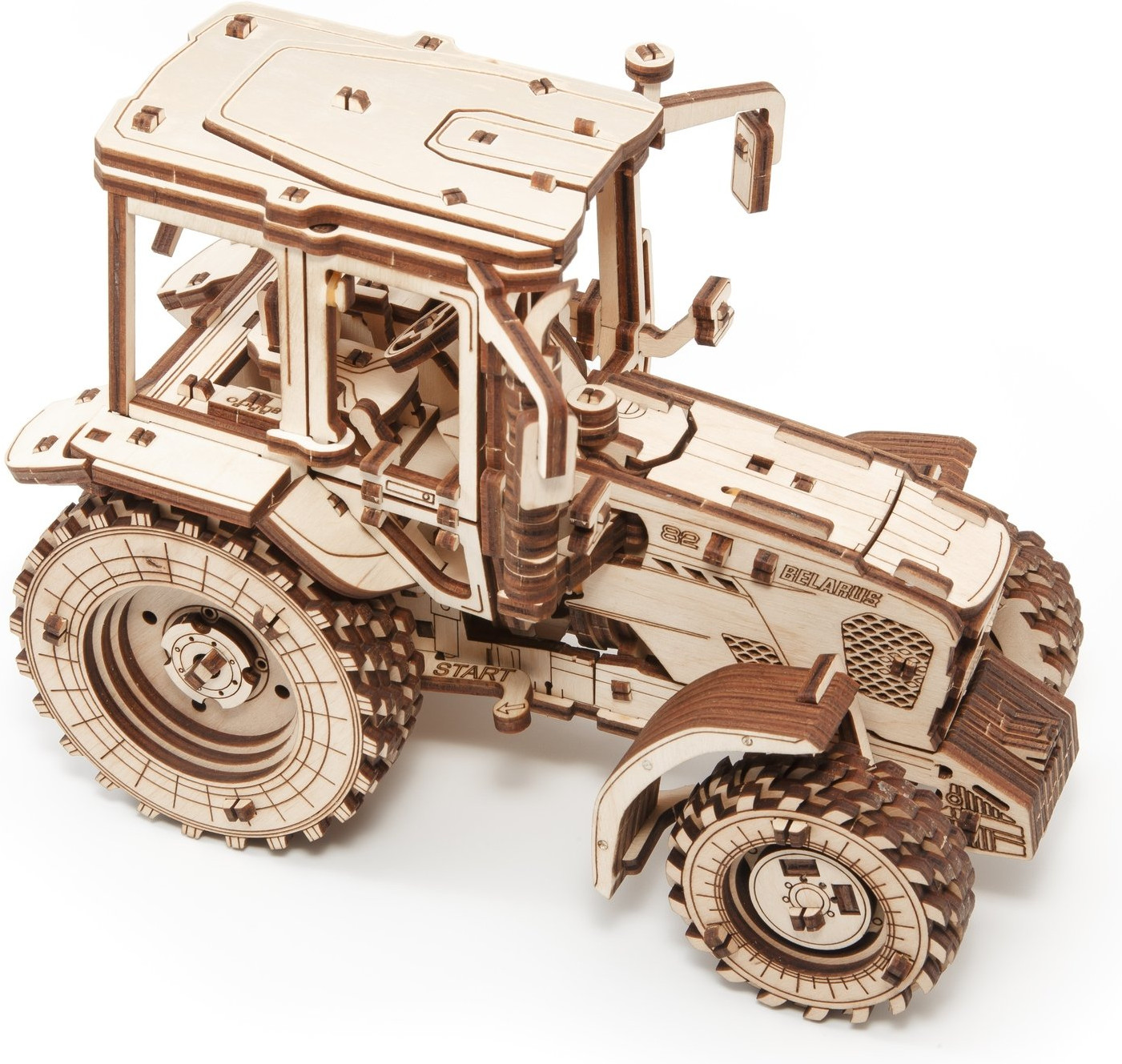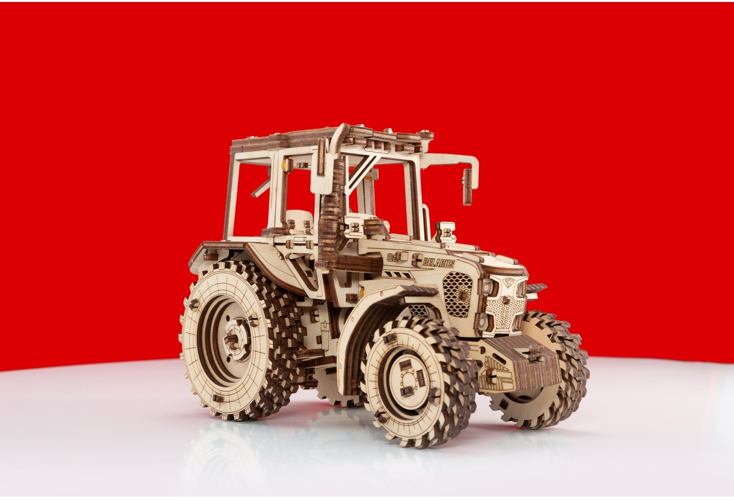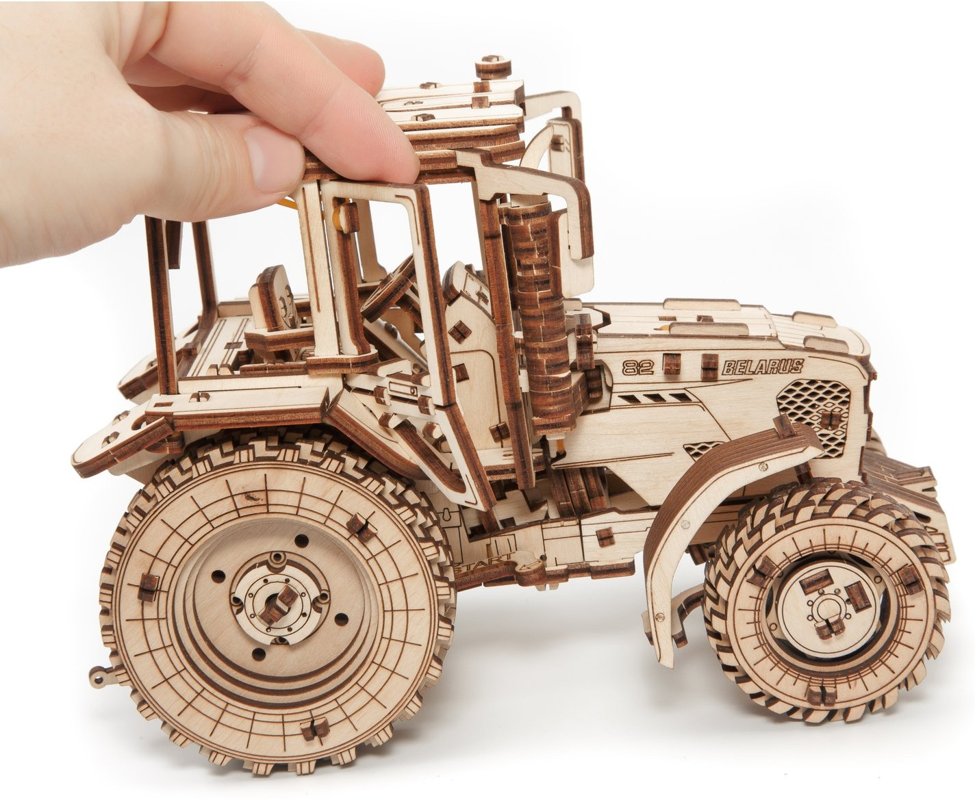 Механическая деревянная сборная модель «Трактор Беларус-82» создан совместно с Минским Тракторным Заводом (МТЗ), официально лицензирован и является полной копией реального трактора. Незабываемый аромат березовой фанеры, душевный настрой и легкая музыка на фоне поможет вам погрузиться в белорусскую глубинку и представить, как трактор вышел на посевную и бороздит бескрайние поля и луга.