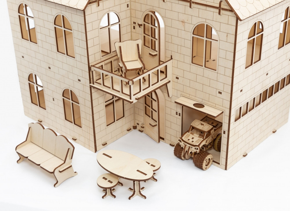EWA Eco-Wood-Аrt Конструктор деревянный 3D «Кукольный дом с лифтом»В данный момент этот товар отсутствует в продаже. Возможно, у нас найдется аналогичный или похожий товар здесь. Первый в своем роде от компании Eco Wood Art — сборная модель из дерева «Кукольный домик с лифтом и мебелью». Ранее компания не могла нас порадовать детскими моделями, но вот и он, что же в нем примечательного: |
