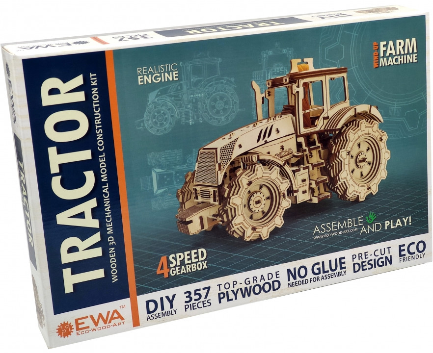 EWA Eco-Wood-Аrt Модель сборная 3D «Трактор»В данный момент этот товар отсутствует в продаже. Возможно, у нас найдется аналогичный или похожий товар здесь. Механическая деревянная сборная модель «Трактор». Модель большого размера, в собранном видел длина составляет почти 32 см, а высота 21 см. Конструктор механический, а это значит, что он может ехать самостоятельно и в этом ему помогает заводной мотор, который расположился прямо под капотом. Сборная модель поставляется в яркой, подарочной упаковке, с понятной иллюстрированной инструкцией. Незабываемый аромат березовой фанеры, душевный настрой и легкая музыка на фоне поможет вам погрузиться в белорусскую глубинку и представить, как трактор вышел на посевную и бороздит бескрайние поля и луга. |