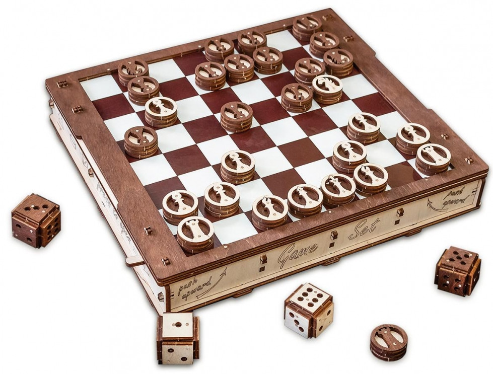 Все детали и игровое поле сделаны из березовой фанеры высшего сорта. Все детали отшлифованы и их приятно держать в руках. Столь необычный сувенир будет отличным подарком для ваших коллег и друзей. В офисе вы сможете насладиться игрой в минуты отдыха.