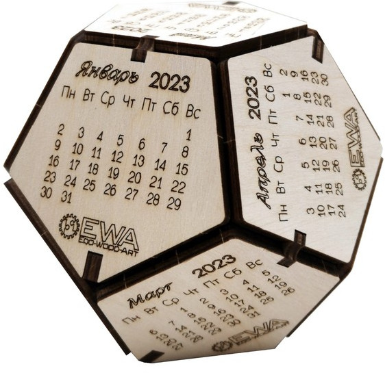 EWA Eco-Wood-Аrt Конструктор деревянный «Календарь-додекаэдр»В данный момент этот товар отсутствует в продаже. Возможно, у нас найдется аналогичный или похожий товар здесь. Сборная моделька из дерева, предмет коллекционирования и простой недорогой сувенир для коллег, друзей и партнеров. Деревянный календарь «Додекаэдр». Сама форма додекаэдр кажется, что была придумана для размещения календаря с месяцами и датами, 12 граней и 12 месяцев. Деревянный конструктор, сувенир «Календарь» собирается очень просто и со сборкой справится даже ребенок. |
