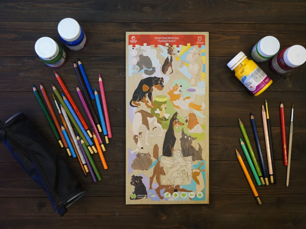 Lemmo Пазл-раскраска «Найди кота»В данный момент этот товар отсутствует в продаже. Возможно, у нас найдется аналогичный или похожий товар здесь. Серия: Пазлы и головоломки Новая серия деревянных развивающих пазлов для детей от компании «Lemmo». Развивающая игра «Найди Кота» — это не только деревянный пазл, но и красивая раскраска из дерева. Пазл поставляется со скрепленными деталями, который вы можете раскрасить, потом выдавить детали и собрать пазл. |
