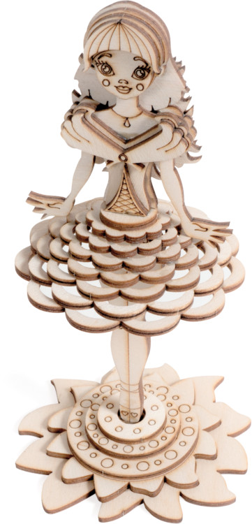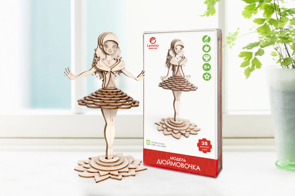 Набор «Дюймовочка» — небольшой и простой конструктор для девочек. У собранной модели поднимаются и опускаются руки, сама Дюймовочка вращается на подставке.