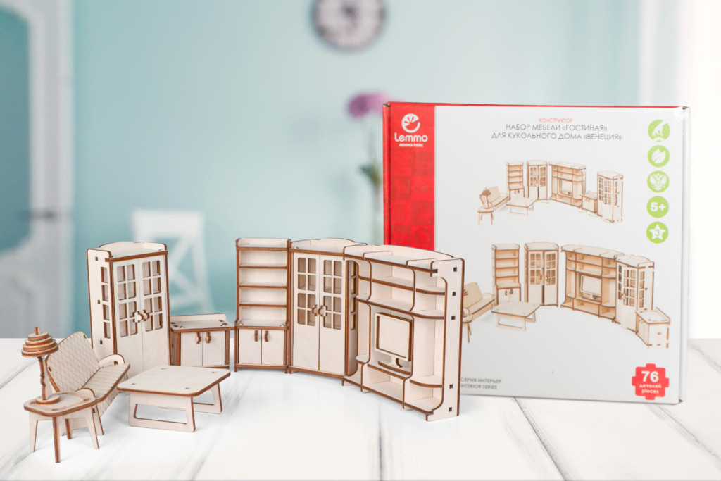 Lemmo Набор мебели для кукол «Гостиная»В данный момент этот товар отсутствует в продаже. Возможно, у нас найдется аналогичный или похожий товар здесь. Серия: Постройки и домики Набор мебели «Гостиная» создан специально для одной из комнат кукольного домика «Венеция». Мебель выполнена из березовой фанеры, даже небольшие элементы, такие как ручки на дверцах. Все детали собираются с небольшим количеством клея, просто вставляются в пазы, крепление очень прочное и надежное. |