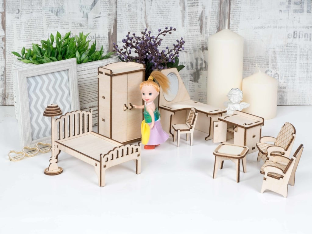 Lemmo Набор мебели для кукол «Спальня»В данный момент этот товар отсутствует в продаже. Возможно, у нас найдется аналогичный или похожий товар здесь. Серия: Постройки и домики Набор мебели «Спальня» создан специально для одной из комнат кукольного домика «Венеция». Мебель выполнена из березовой фанеры, даже небольшие элементы, такие как ручки на дверцах. Сборка частично с клеем. |