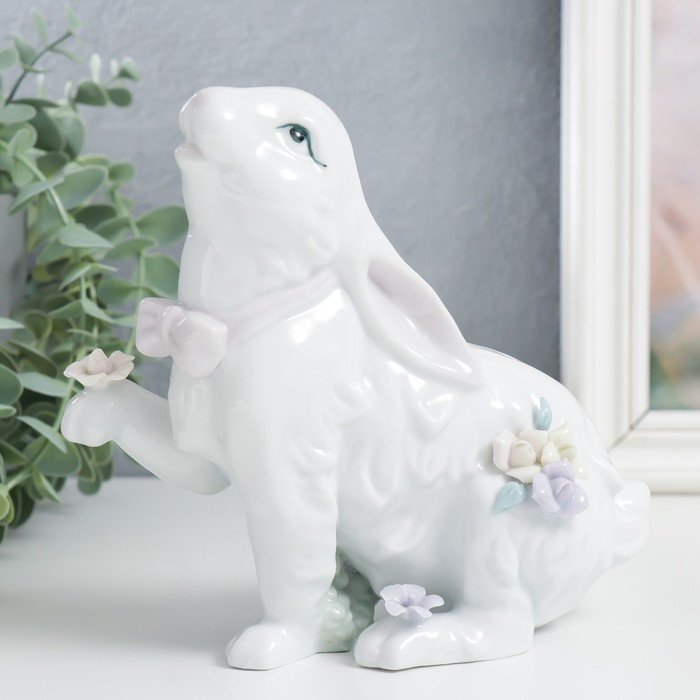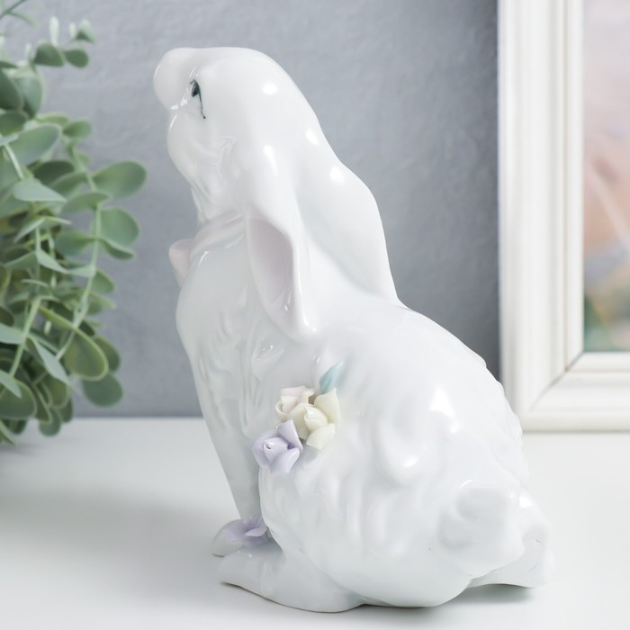 Сувенир «Белый кролик с розовым бантом и розочками»-40% +246