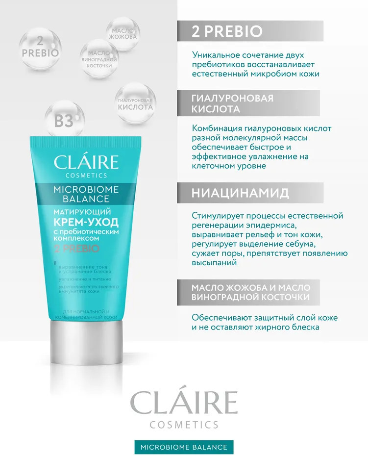 Claire Cosmetics Крем для нормальной и комбинированной кожи матирующий+24