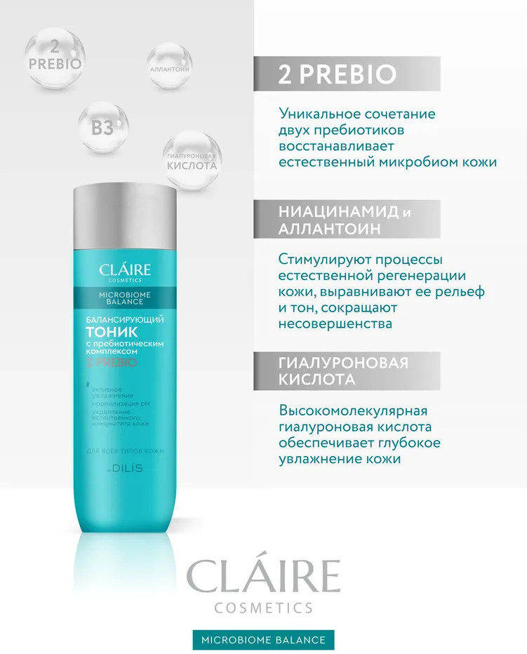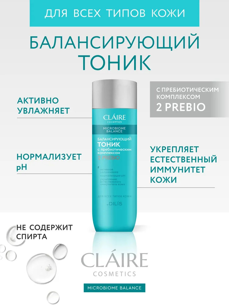 Claire Cosmetics Тоник для лица «Балансирующий»-20% +49 увлажнение кожи не сушит приятная отдушка состав уход