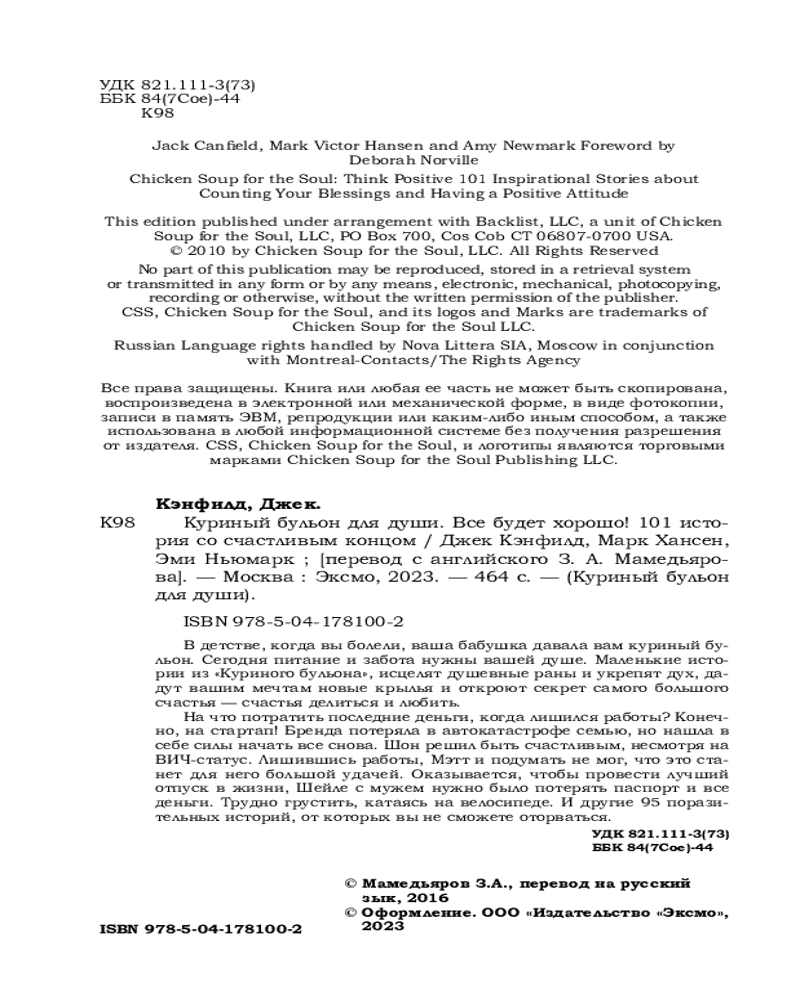 | Куриный бульон для души. Все будет хорошо! 101 история со счастливым концом Джек Кэнфилд +30 (бонусов)
