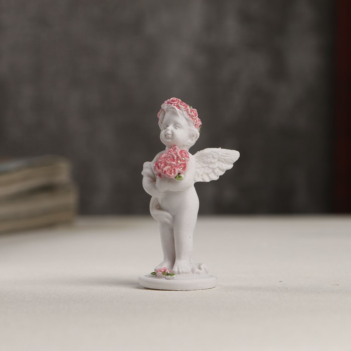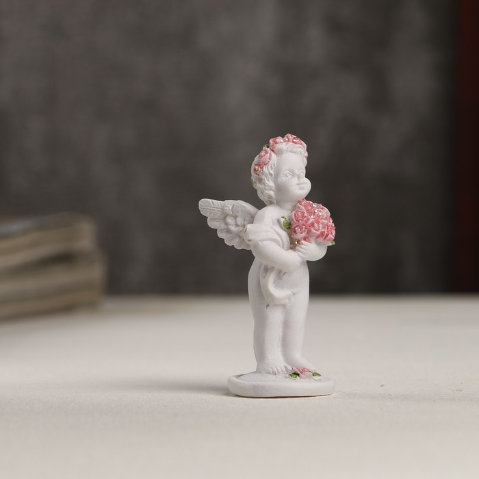 Сувенир «Белоснежный ангел в розовом веночке с букетом роз»-25% +12