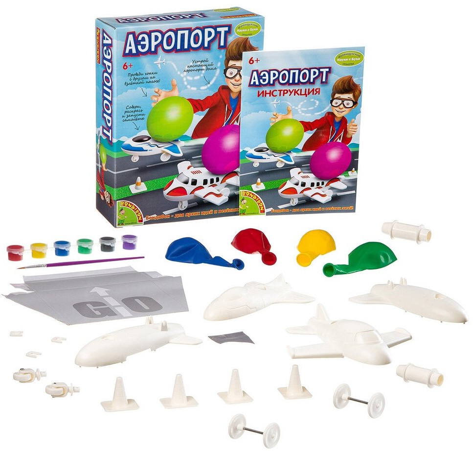 Серия: Науки с Буки. Французские опыты Познакомься с принципами работы реактивного двигатели и собери действующую модель самолёта. Внутри есть всё необходимое для сборки двух моделей самолётов и подробную инструкцию. Готовые модели можно раскрасить и устроить соревнования с друзьями. |