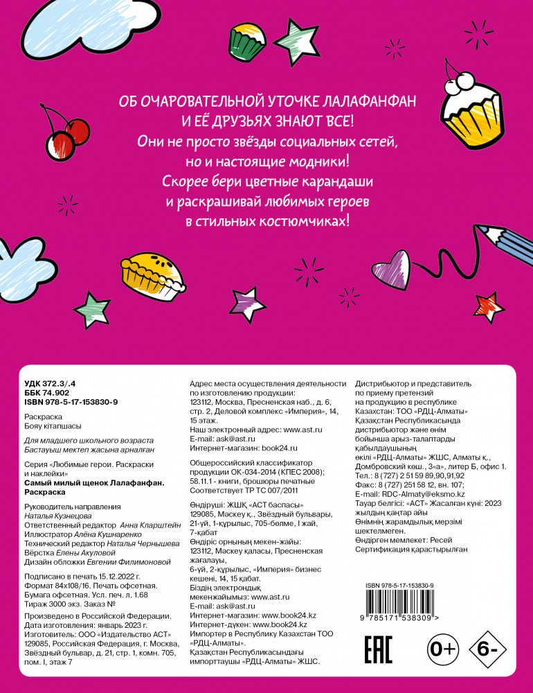 💳 Оплатить за товар можно при получении 🇰🇿 Есть бесплатная доставка по Казахстану от 1 дня 🎁 Копите бонусы с каждой покупки Серия: Любимые герои. Раскраски и наклейки Об очаровательной уточке Лалафанфан и ее друзьях знают все! |