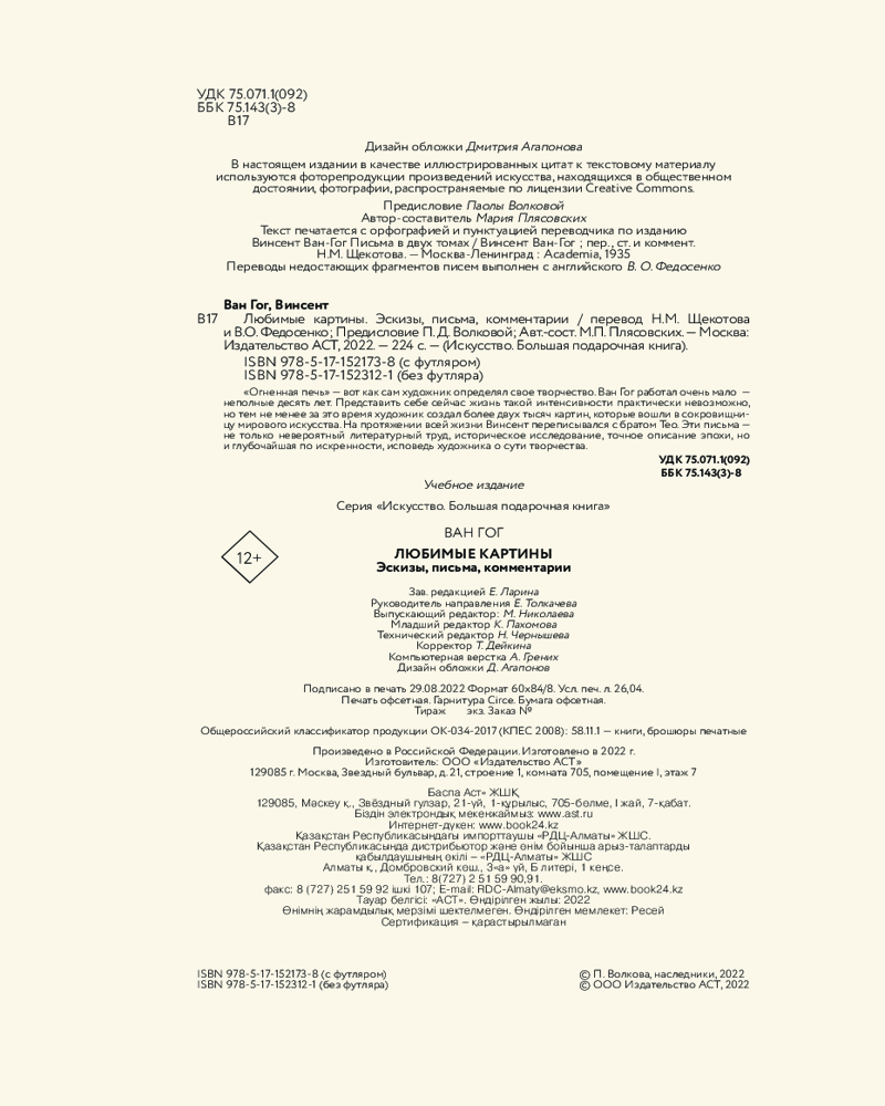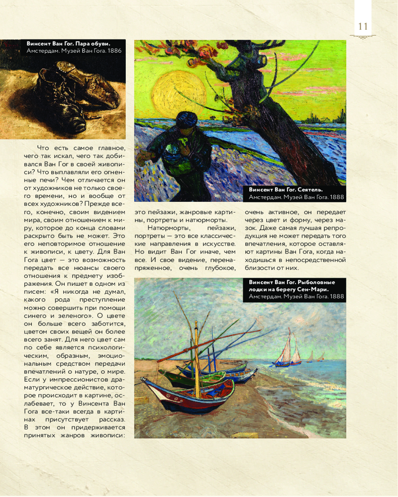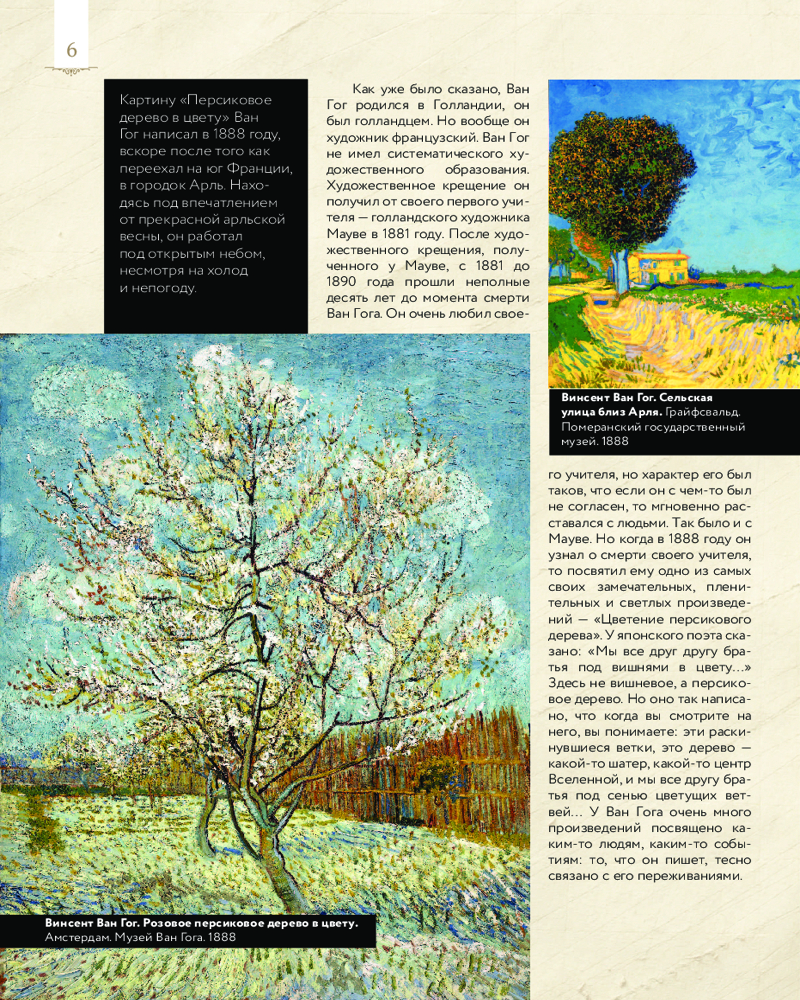 Перед вами уникальное подарочное издание «Ван Гог: любимые картины. Эскизы, письма, комментарии». Оно оформлено в виде красочно иллюстрированного альбома в шикарном футляре, содержащего множество увлекательных фактов о великом живописце, детальные фрагменты его картин, а также эскизы и письма, публикующиеся впервые.