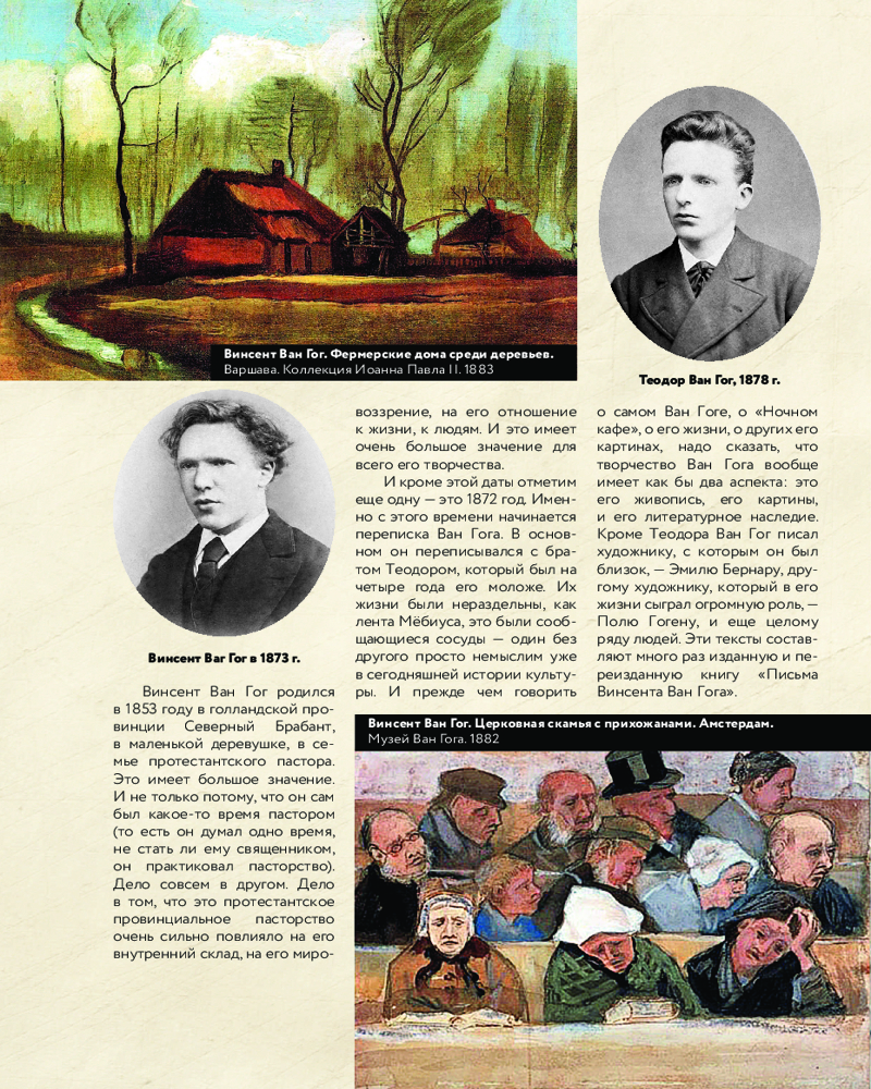 Благодаря книге «Ван Гог: любимые картины. Эскизы, письма, комментарии» вы сможете ближе познакомиться с жизнью и работами ярчайшего представителя импрессионизма. Ван Гог как художник работал очень мало — неполные десять лет. Представить себе сейчас жизнь такой интенсивности практически невозможно, но тем не менее за это время художник создал более двух тысяч картин, которые вошли в сокровищницу мирового искусства. На протяжении всей жизни Винсент переписывался с братом Тео. Эти письма — не только невероятный литературный труд, историческое исследование, точное описание эпохи, но и глубочайшая по искренности исповедь художника о сути творчества.
