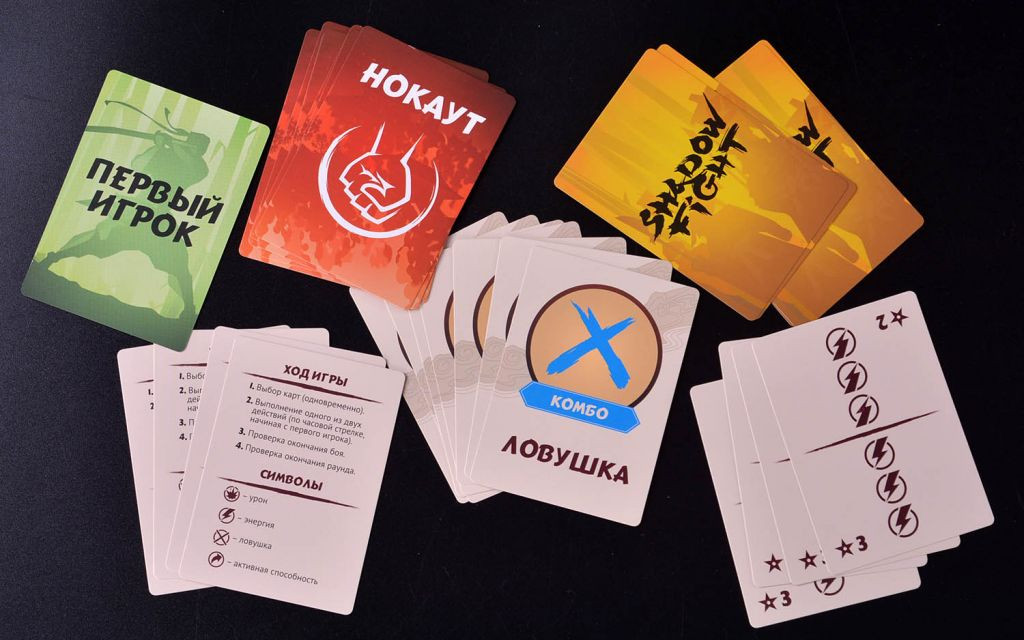 Правила игры: сначала подготовьтесь к игре: случайным образом определите первого игрока — он получает соответствующую карту, и с него начнётся розыгрыш карт приёмов. Раздайте игрокам по 2 карты демонов: выберите одного из них и положите перед собой лицевой стороной вверх. В центре стола разместите 7 карт тактик согласно правилам игры, а рядом положите стопки карт «Нокаут», карт полей боя и карт приёмов. Вы готовы приступить к битве.